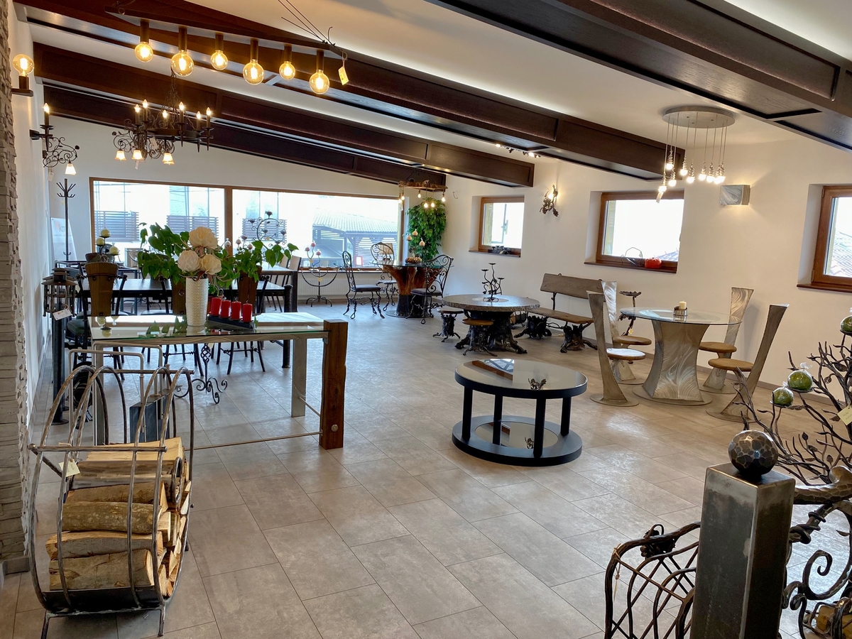 Atelier d'art de la forge UKOVMI – showroom – tables, chaises, bancs, éclairage, rampes...