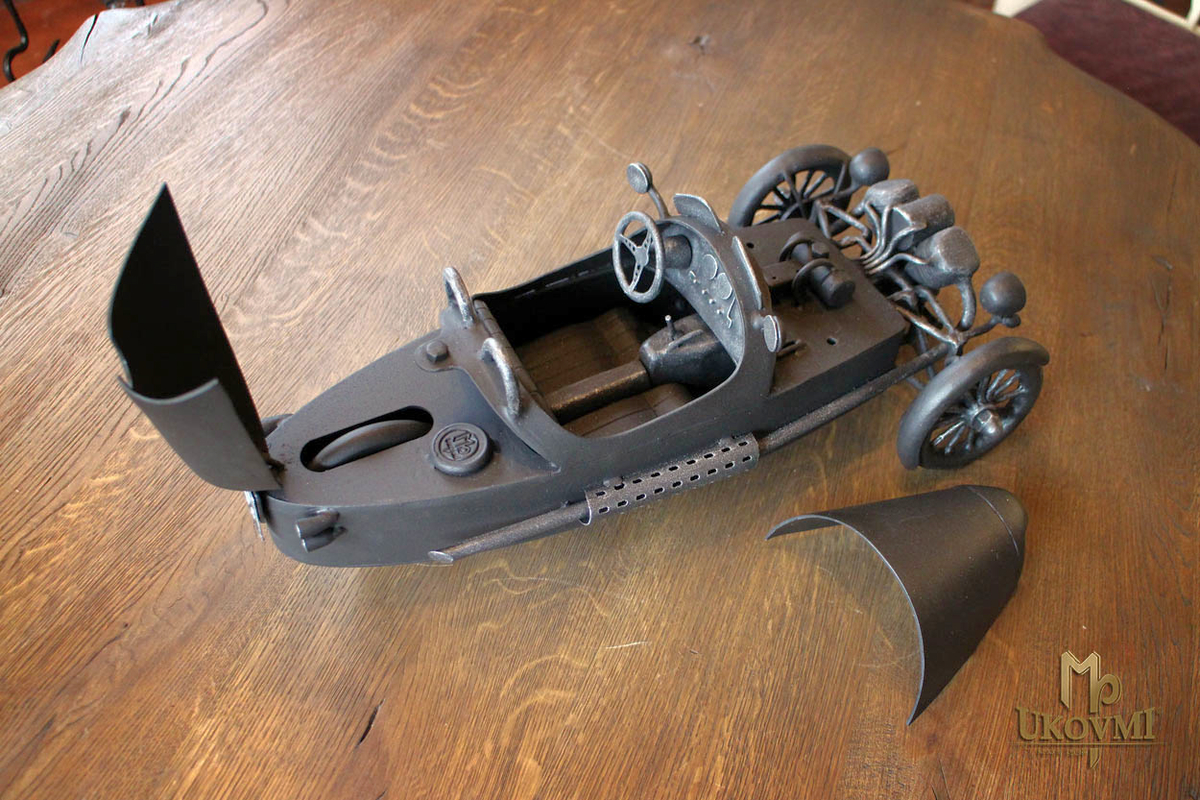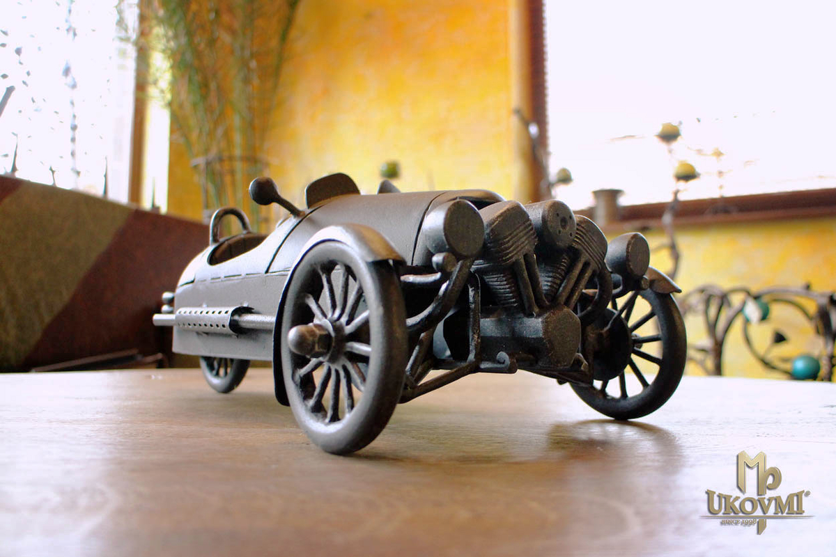 Voiture miniature forgée à la main, modèle Morgan - œuvre d'art
