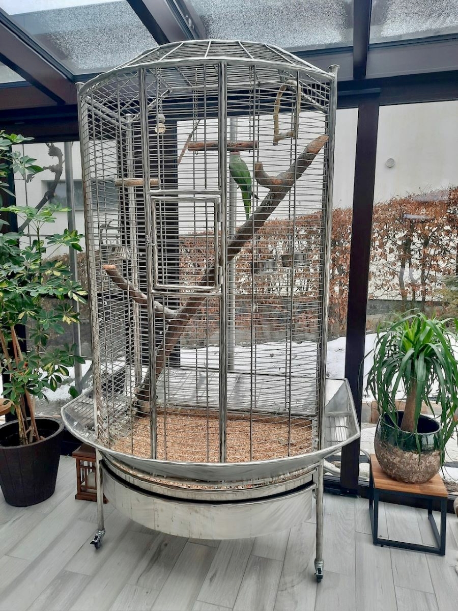 Cage exclusive faite à la main pour perroquet en acier inoxydable brossé