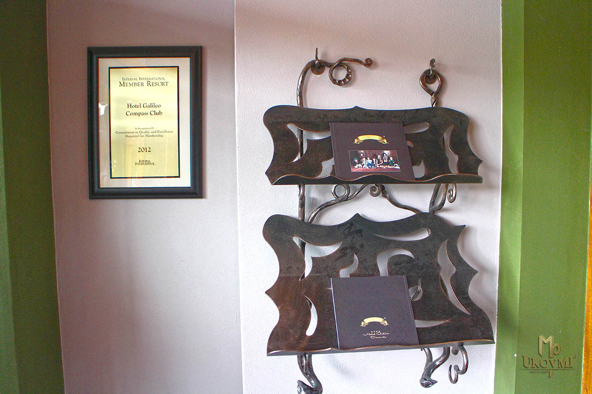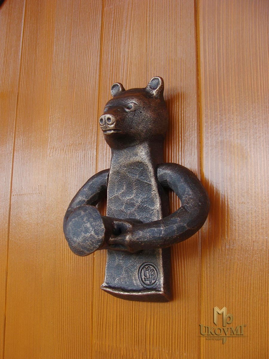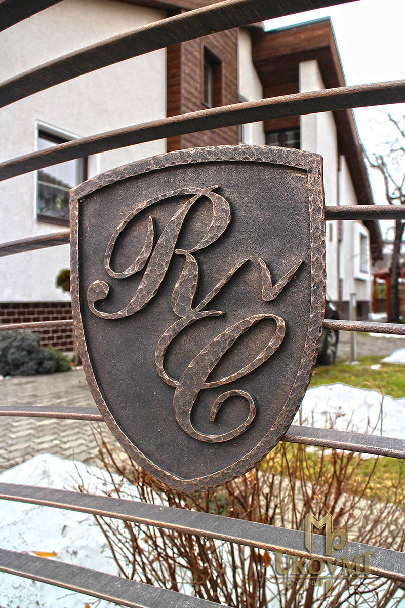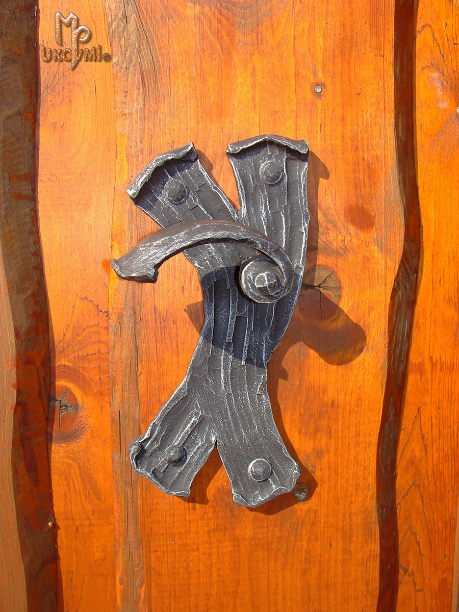 Poignée en fer forgé à la main sur la porte d'entrée avec le logo UKOVMI