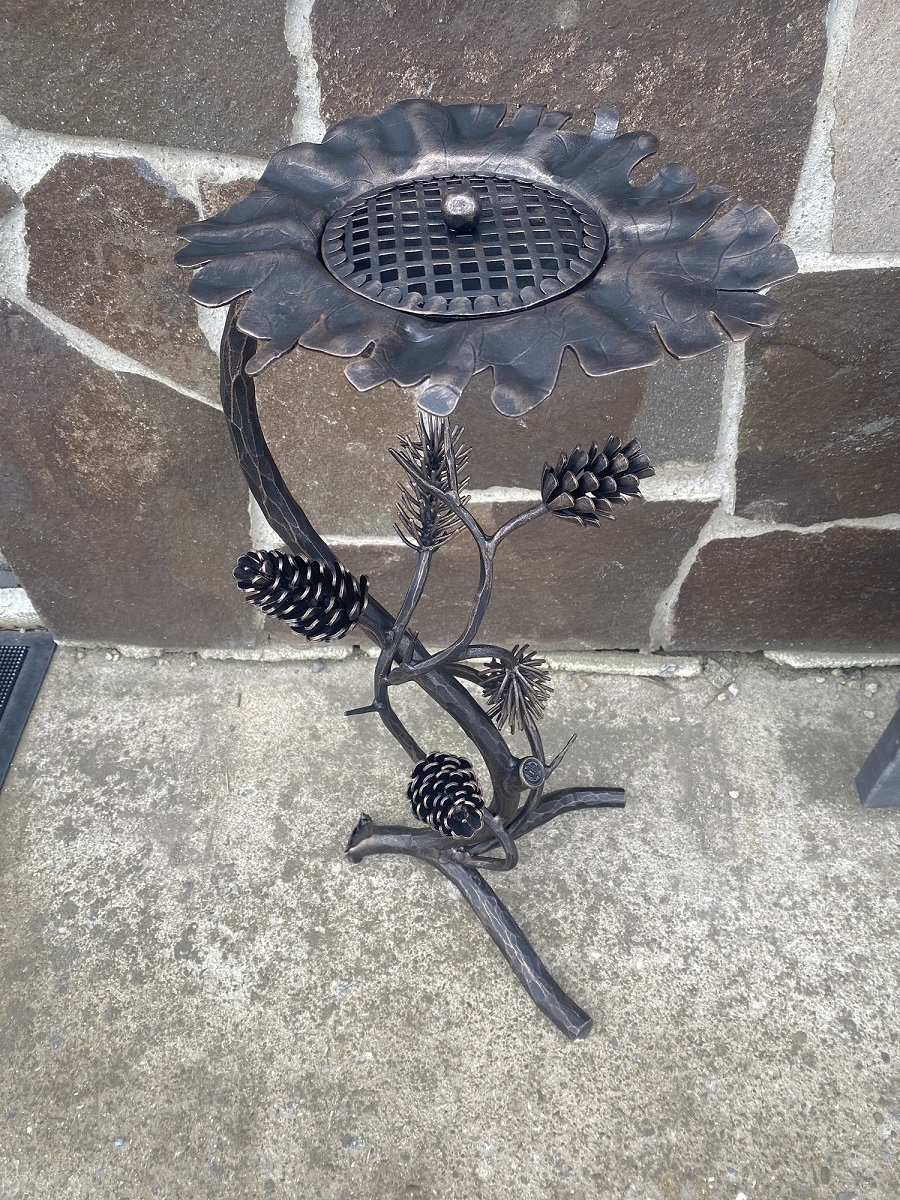 Cendrier forgé à la main en forme de tournesol - accessoire de luxe