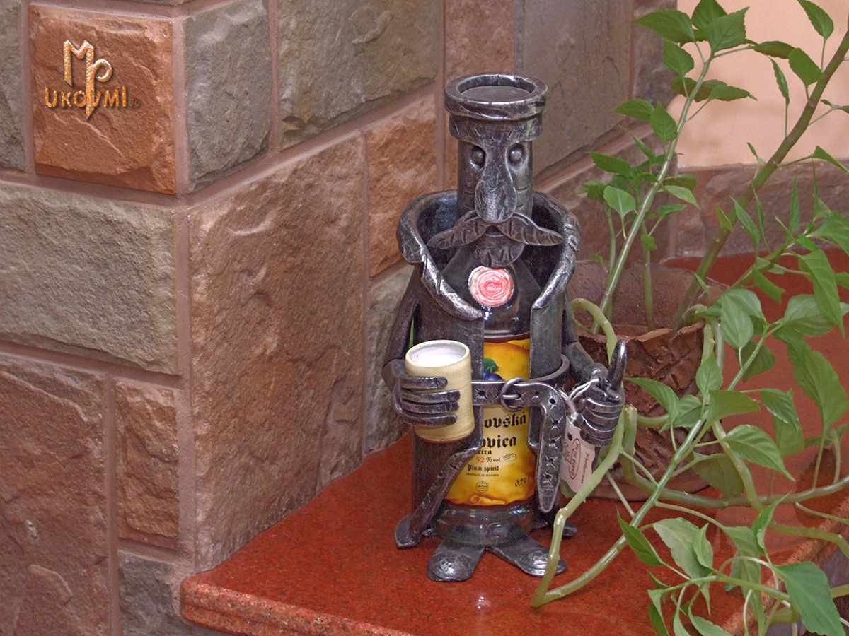 Porte bouteille en fer forgé - Gardien - Accessoire artistique forgé à la main, idéal comme cadeau