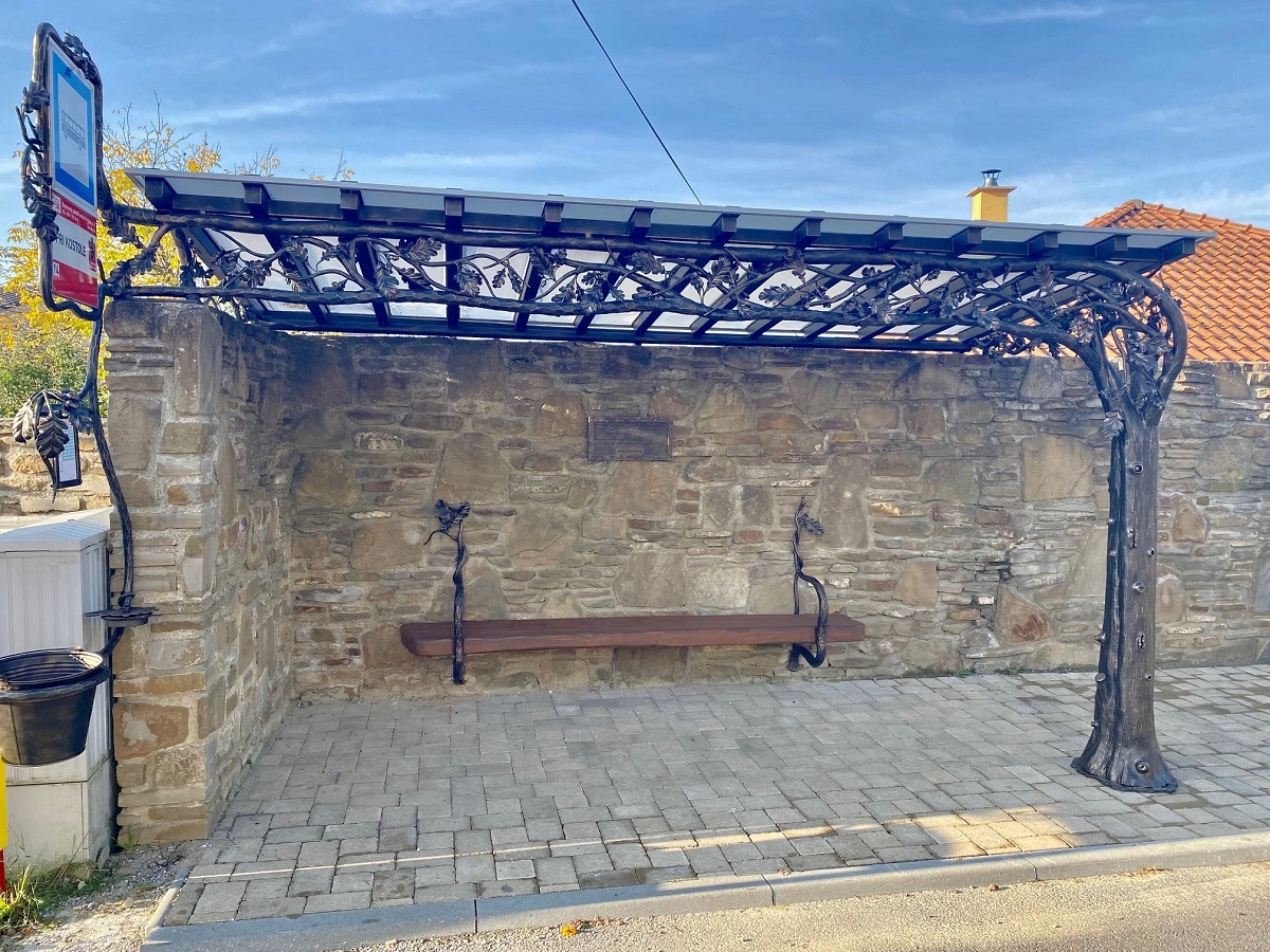 Œuvre d'art - l'arrêt de bus à Velky Saris, Slovaquie, offert par les frères Polohovci à tous ceux qui souhaitent se reposer