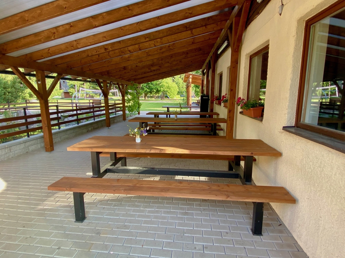 Bancs et tables de jardin pour des événements et des camps au ranch de Kralova Lehota