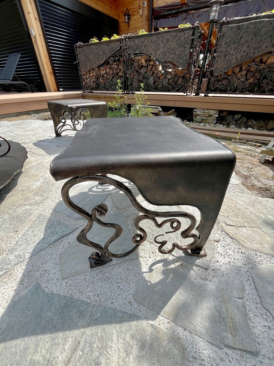 Design artistique de terrasse - abri forgé, rampes, éclairages et mobilier conçus et fabriqués à la main par UKOVMI