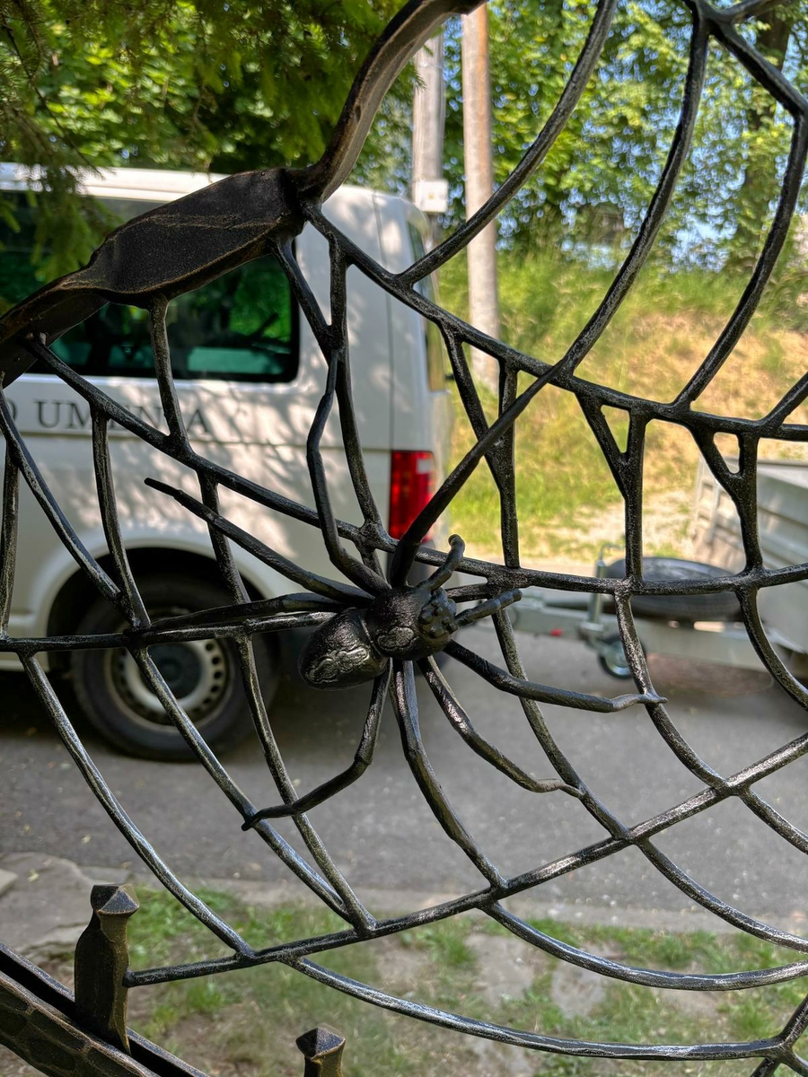 Portillon forgé à la main avec une toile d’araignée et une araignée – portillon design