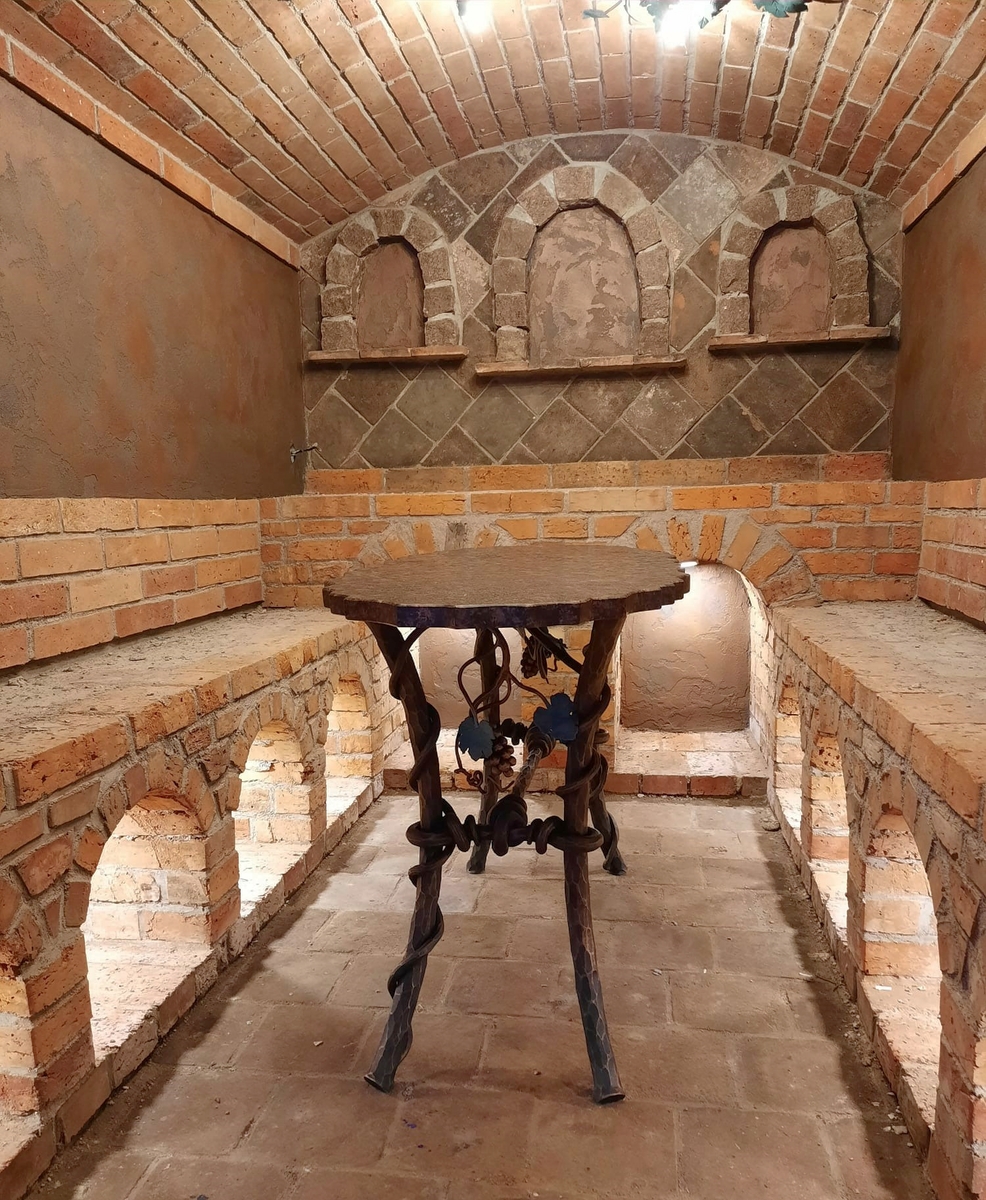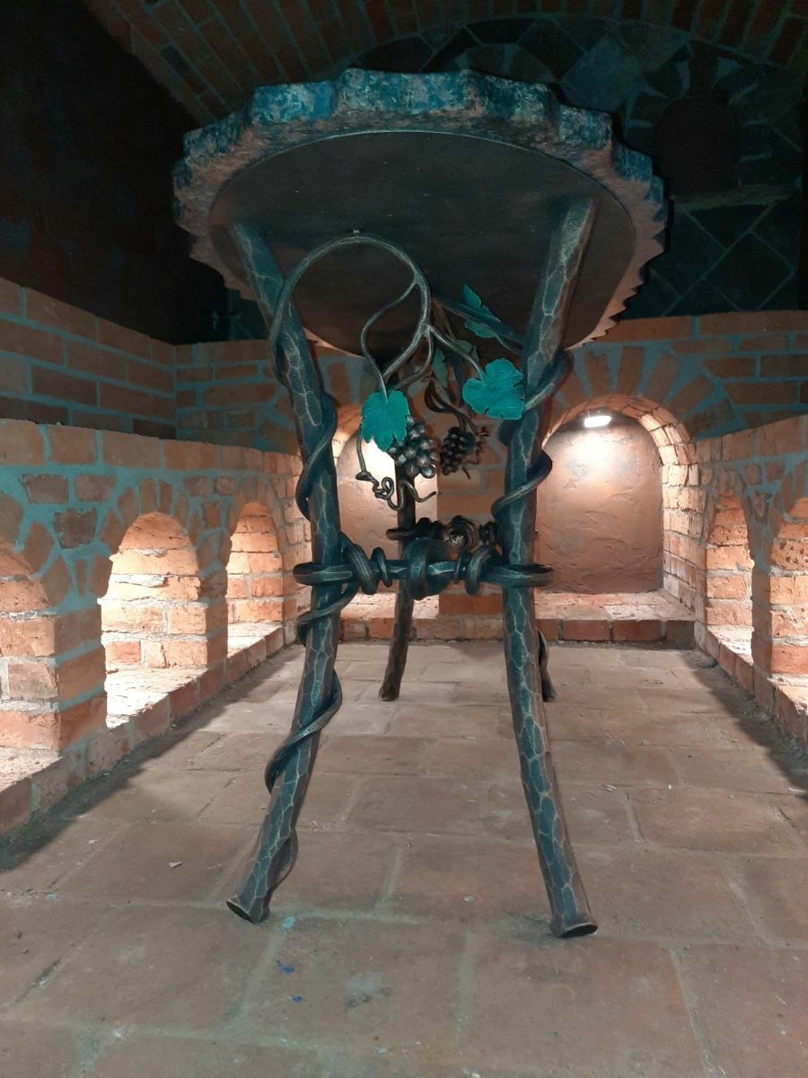 Table forgée à la main avec pierre dans la cave à vin - mobilier de luxe