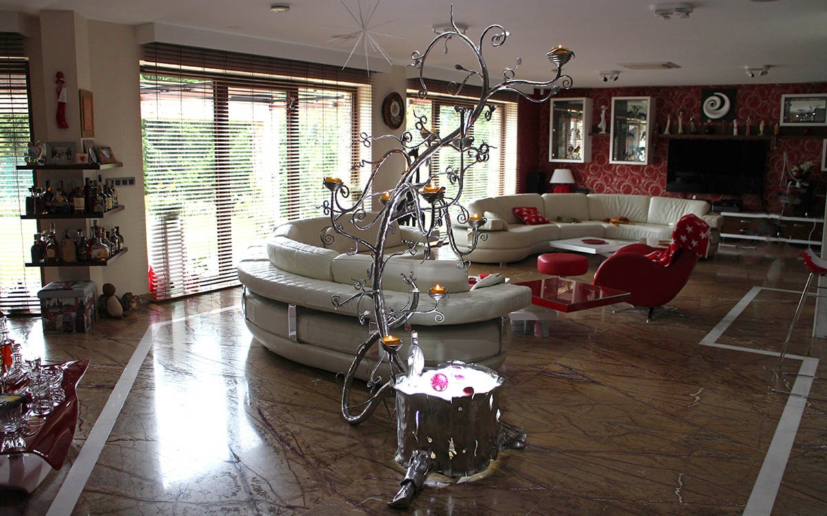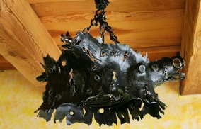 Grilles, sets de cheminée,chandeliers, luminaires en fer forgé et d'autres accessoires en fer forgé.