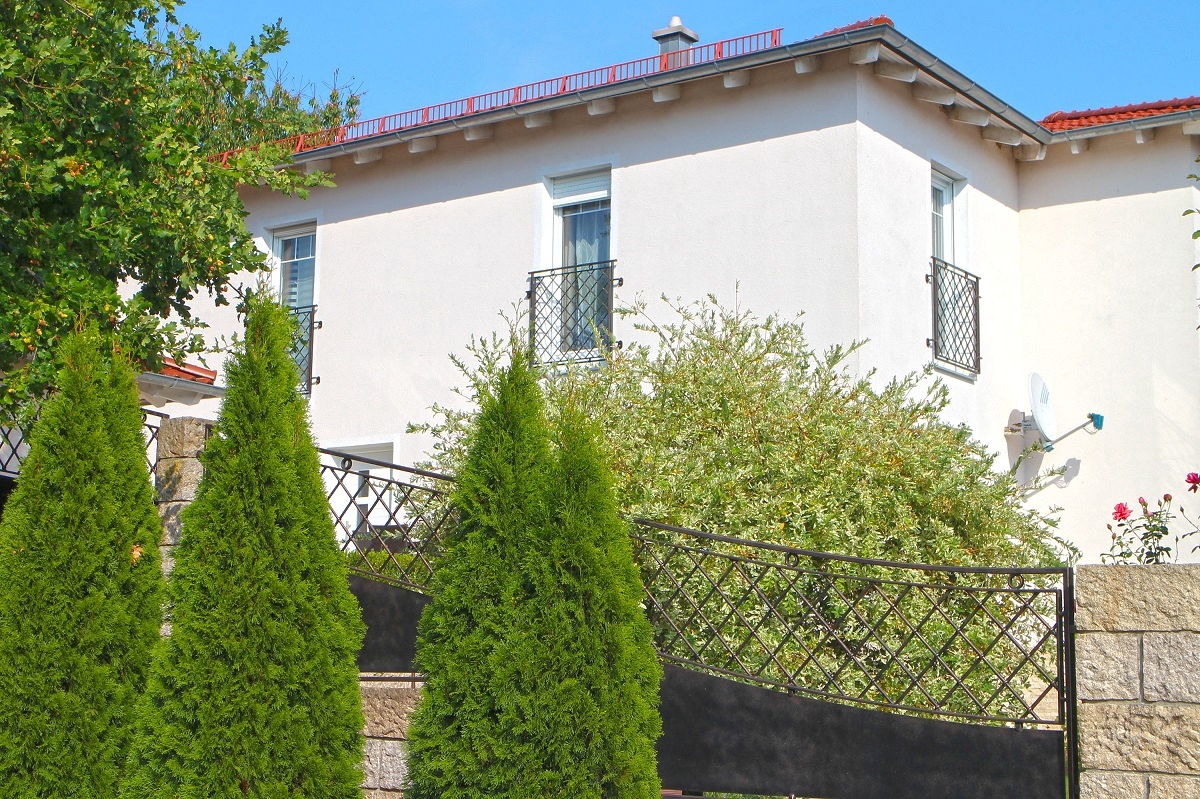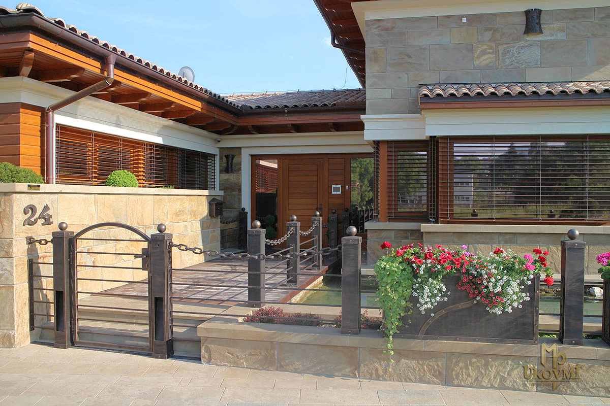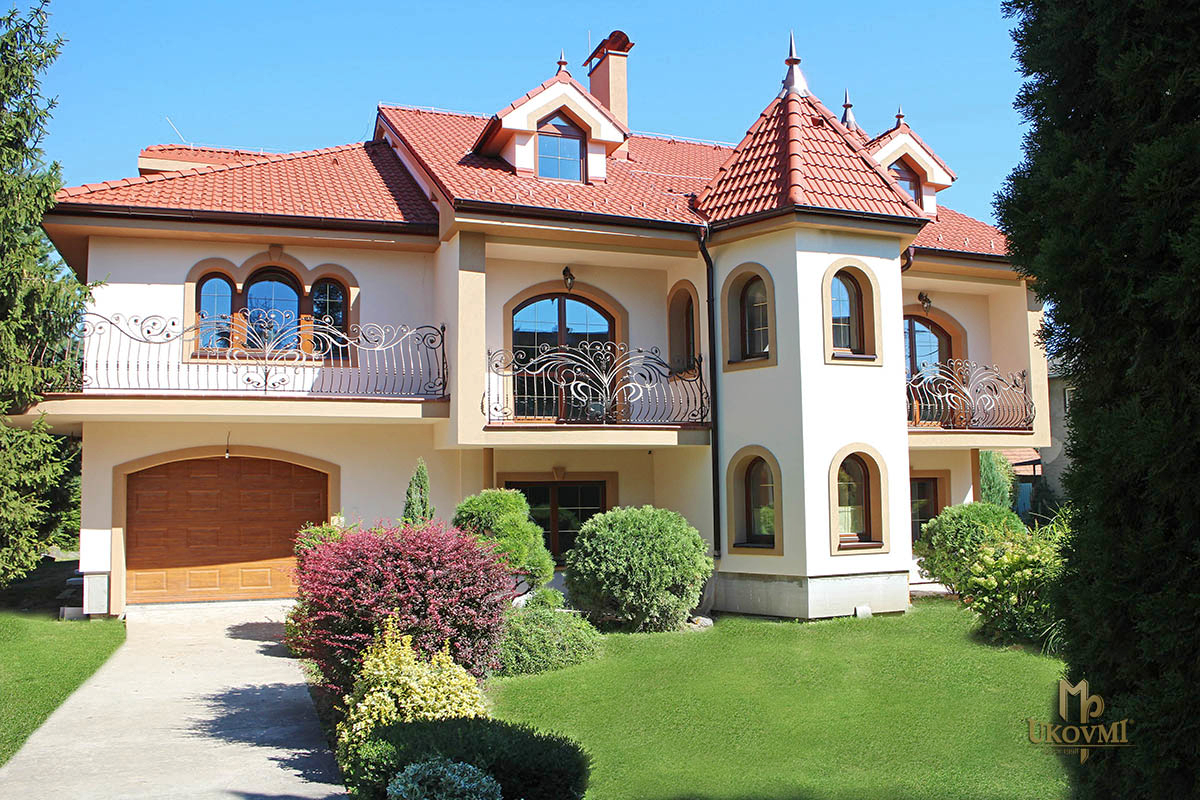 Balustrade forgée sur des fenêtres françaises d'une maison familiale en Allemagne + clôture forgée de UKOVMI