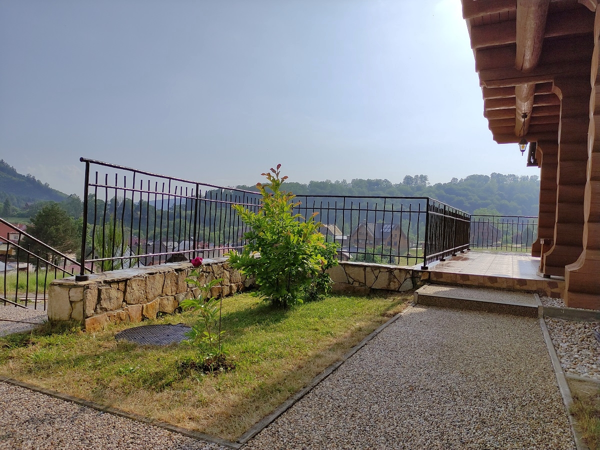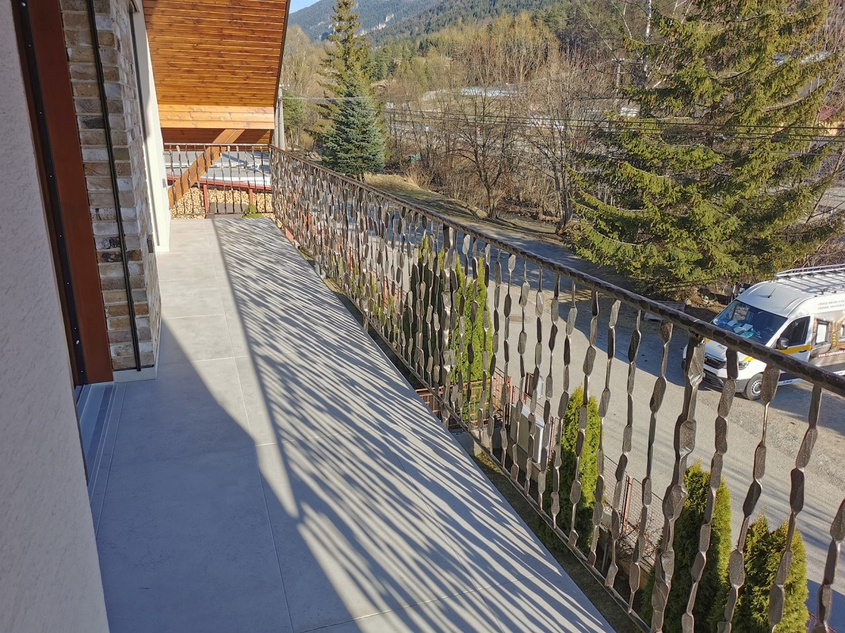 Œuvre d'art en tant que couverture complète de terrasse avec balustrade dans les Tatras