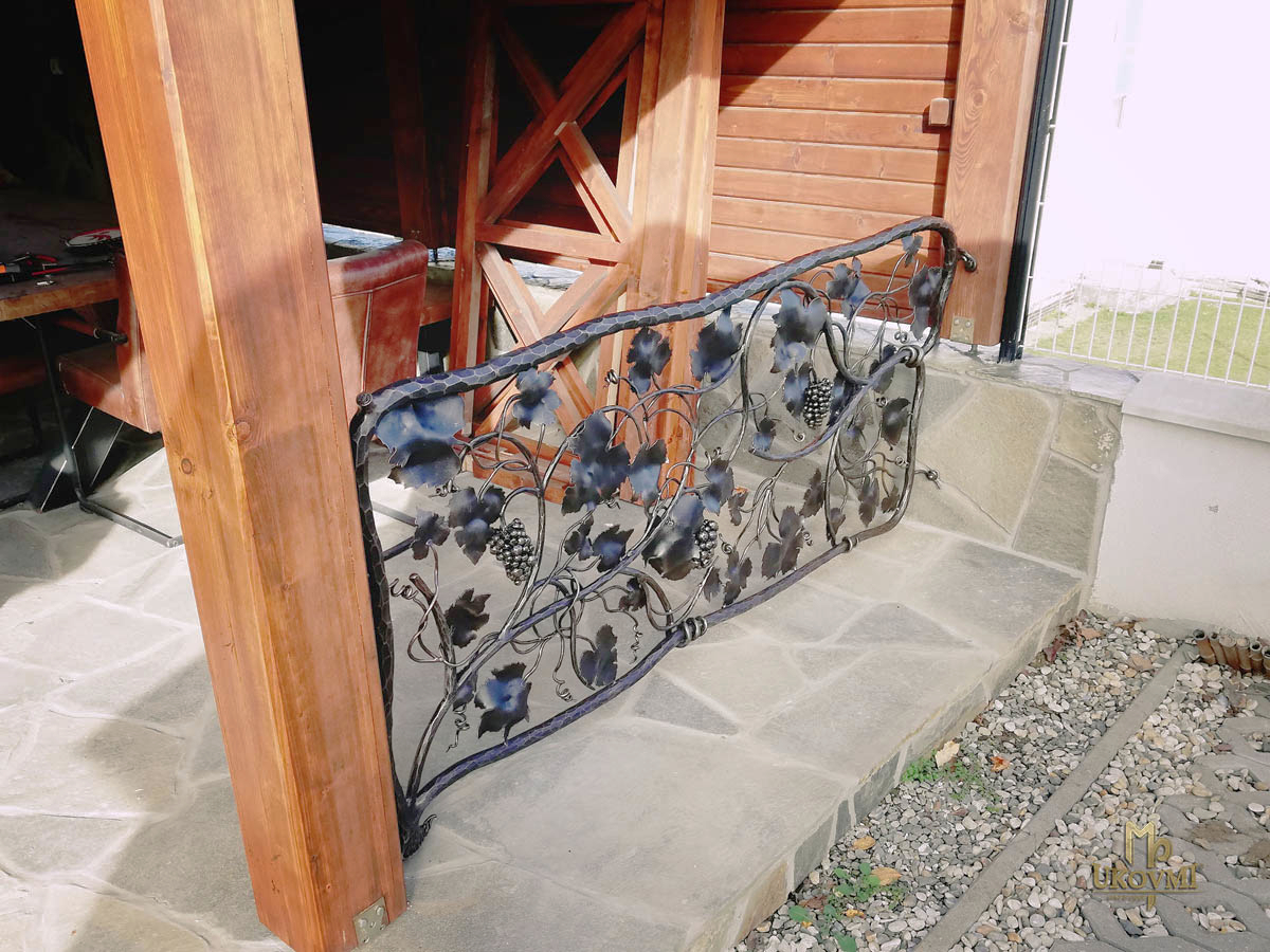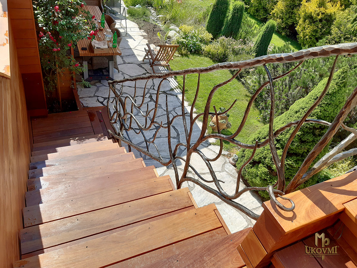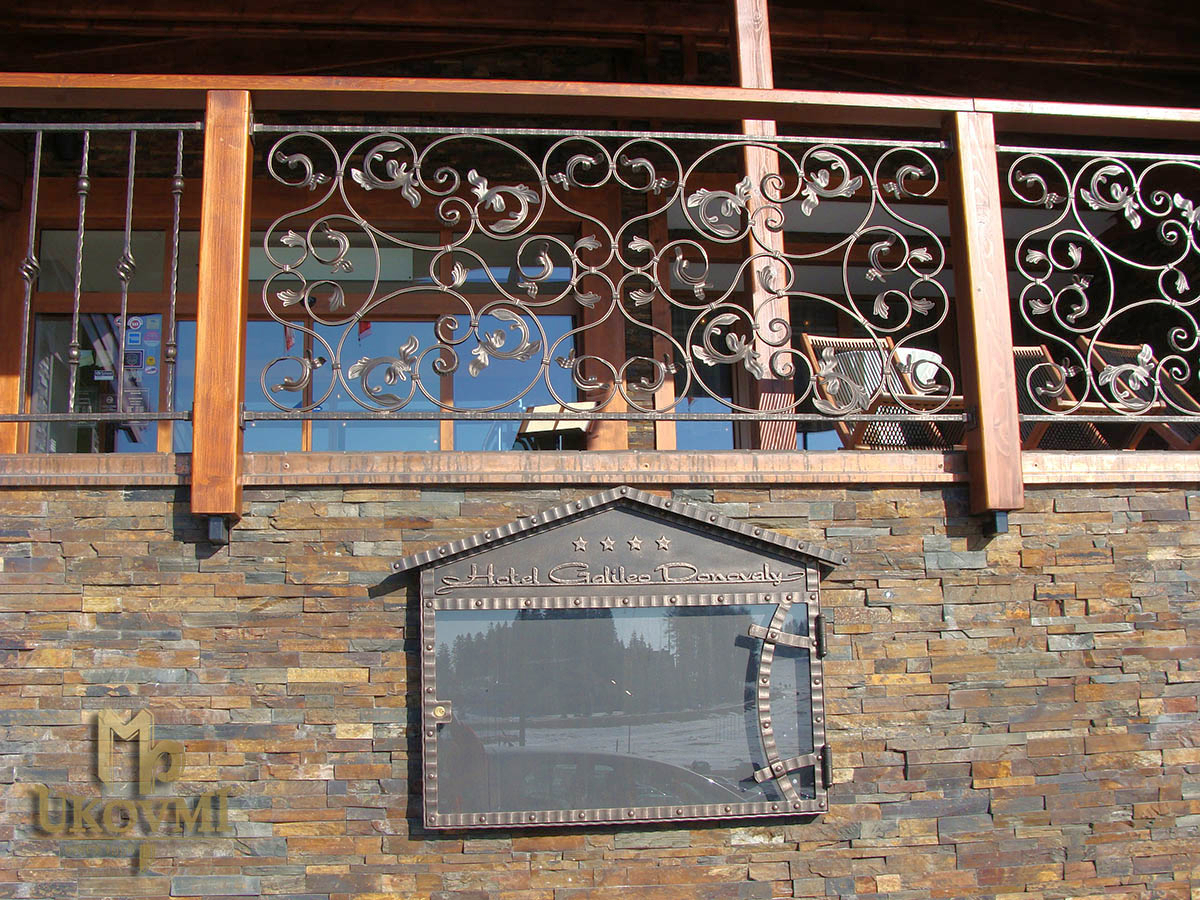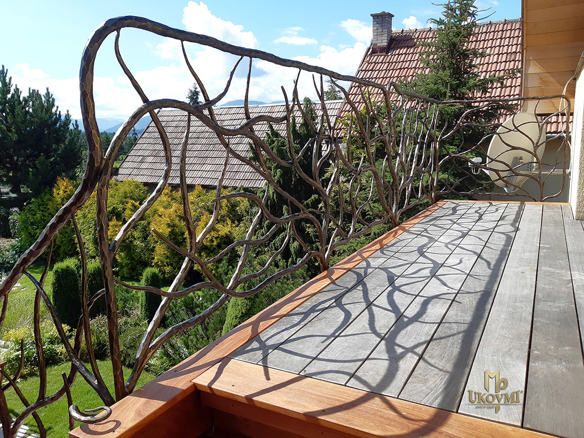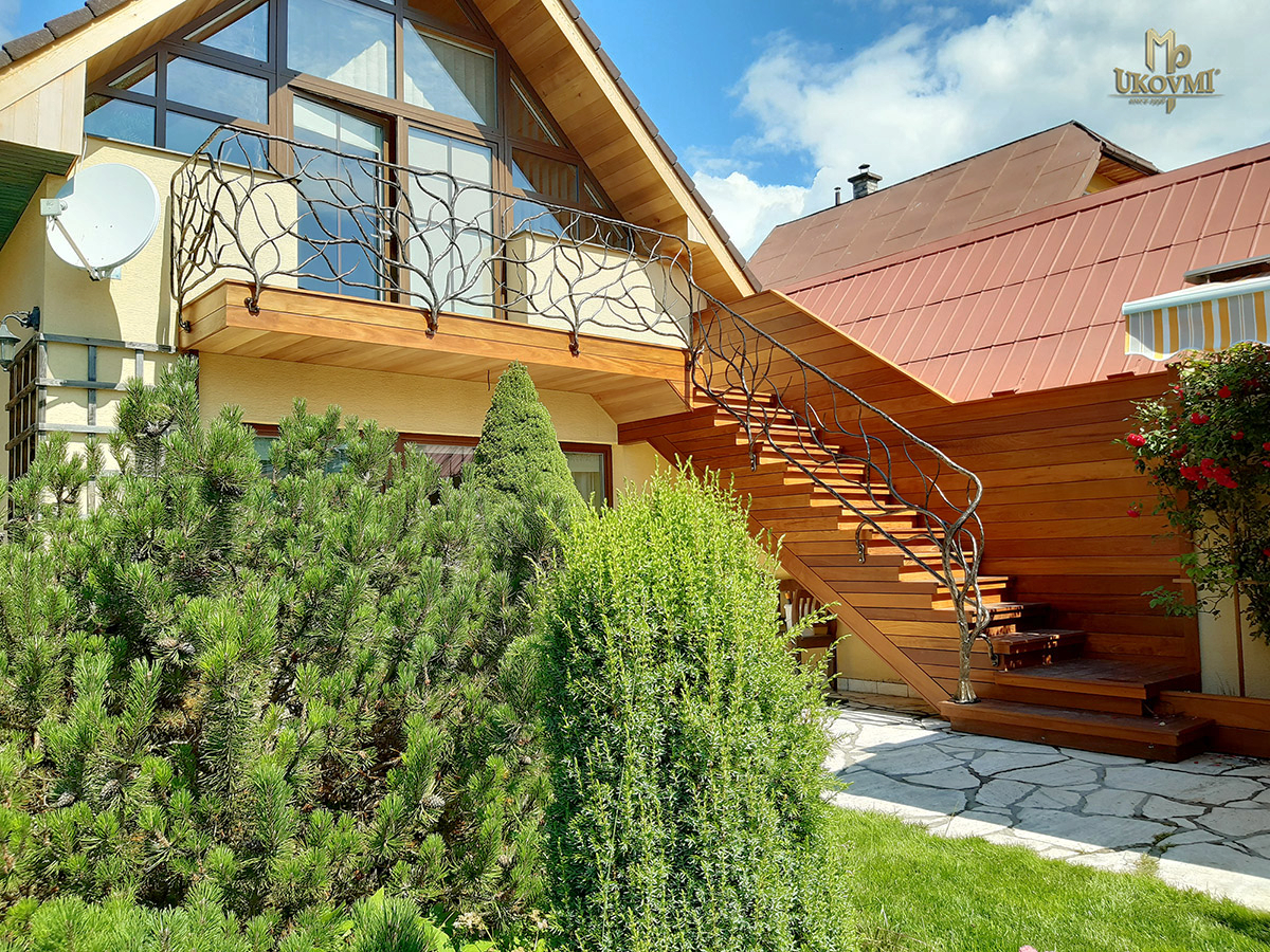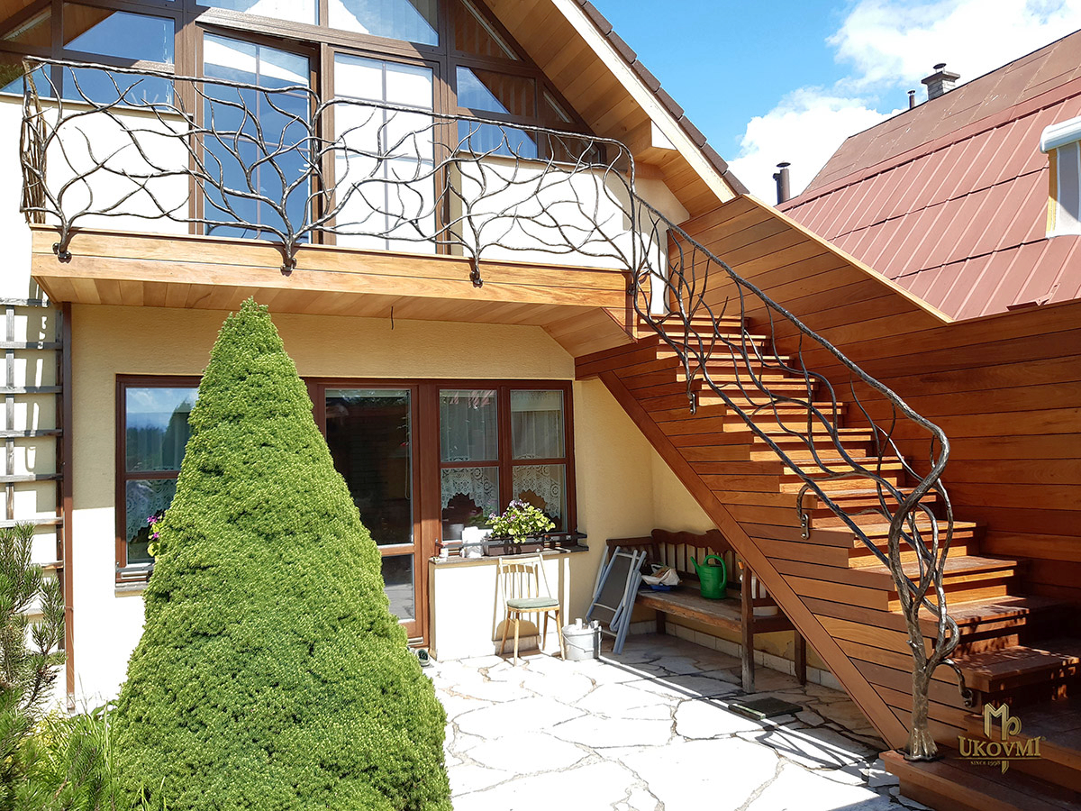 Balustrade artistique fabriquée pour un chalet dans les montagnes de Liptov - balustrade forgée à la main avec le logo UKOVMI