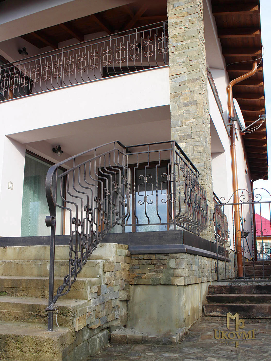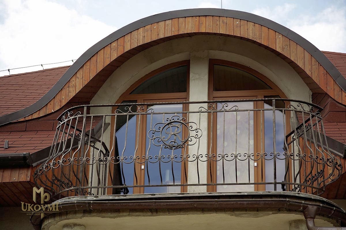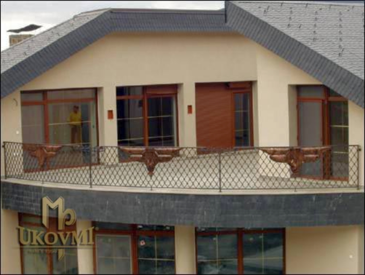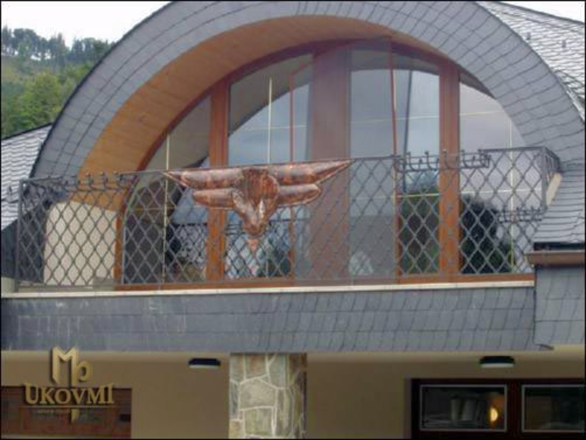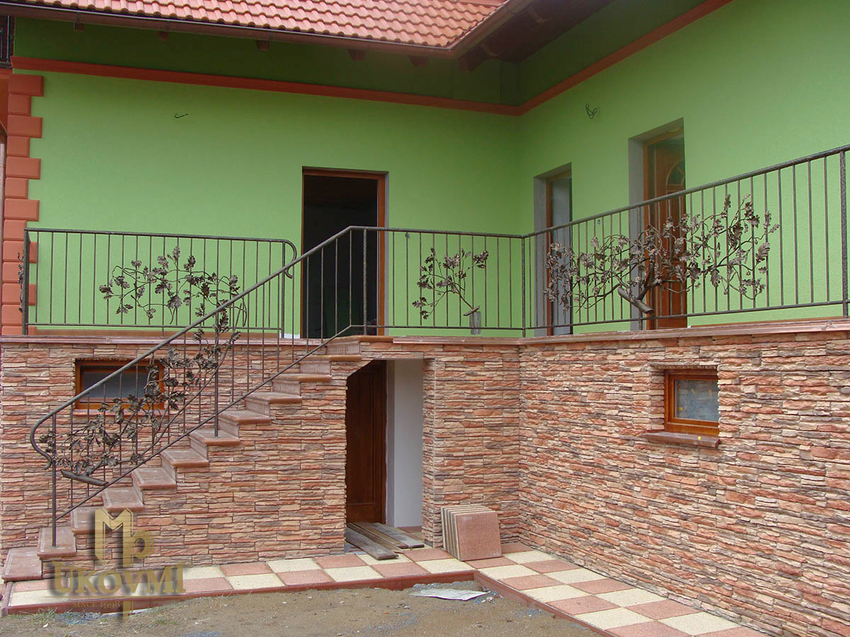 Balustrade artistique fabriquée pour un chalet dans les montagnes de Liptov - balustrade forgée à la main avec le logo UKOVMI