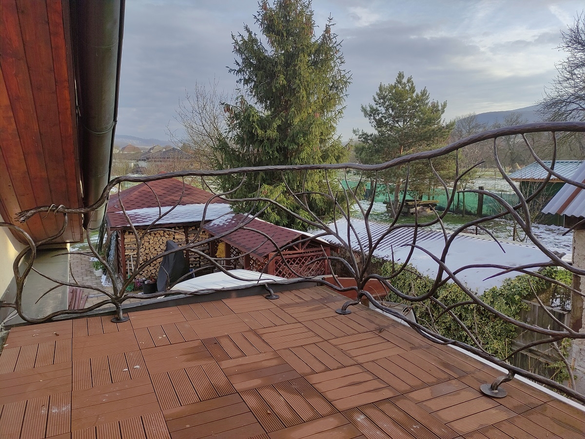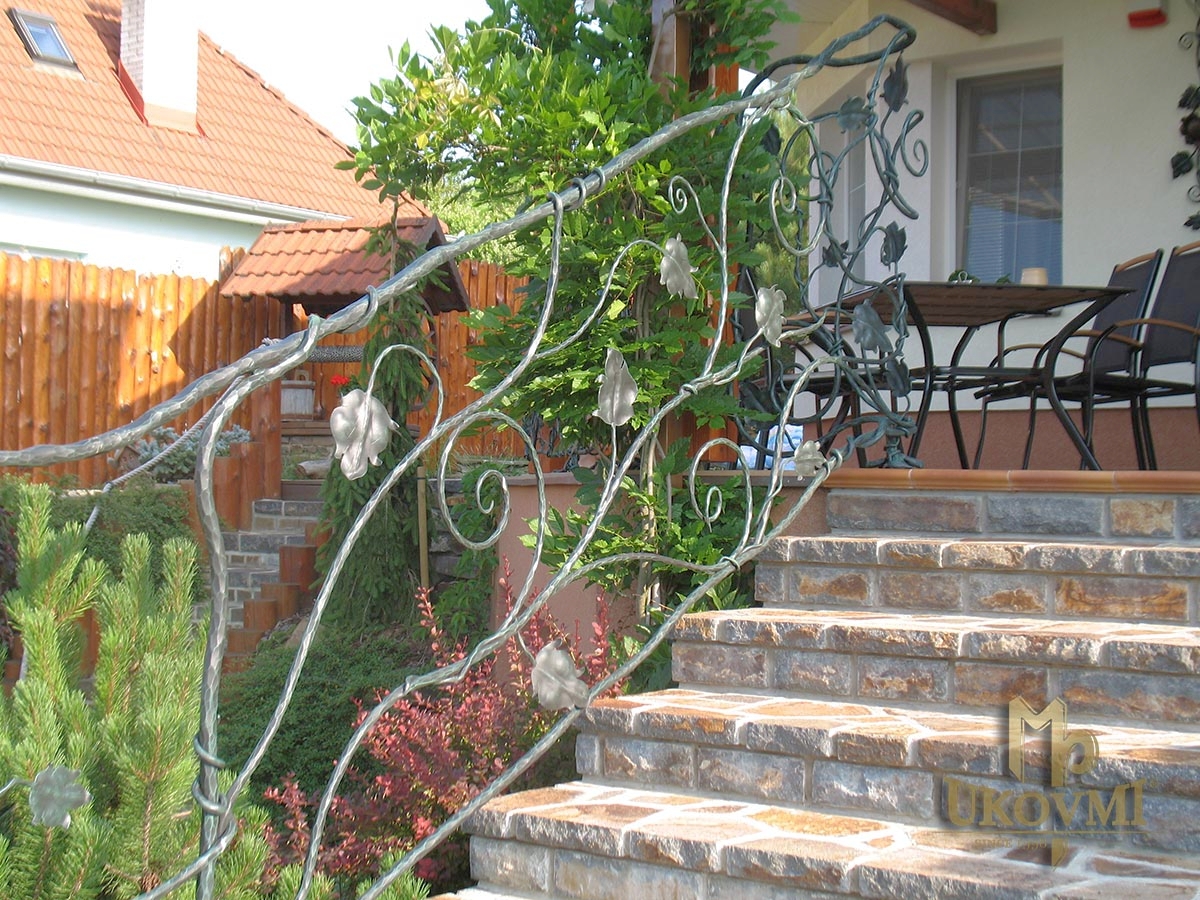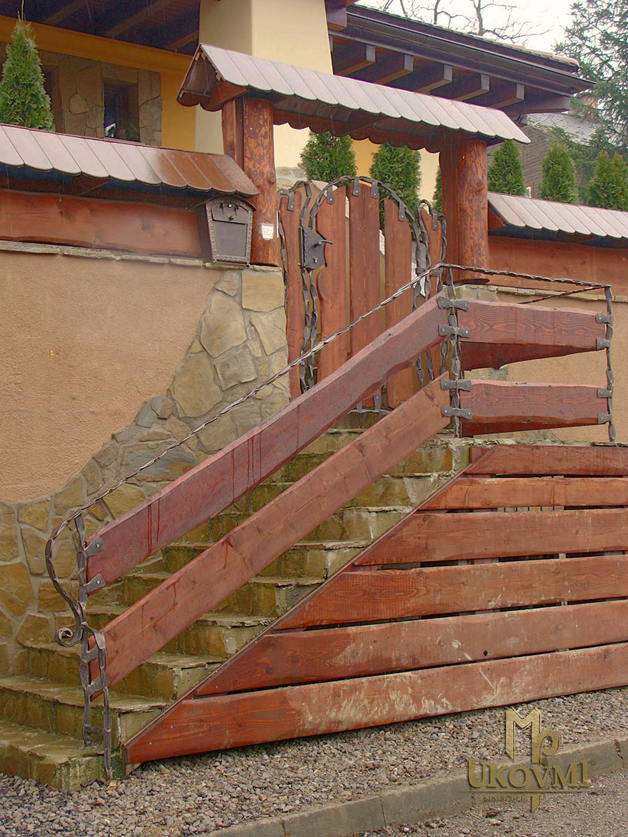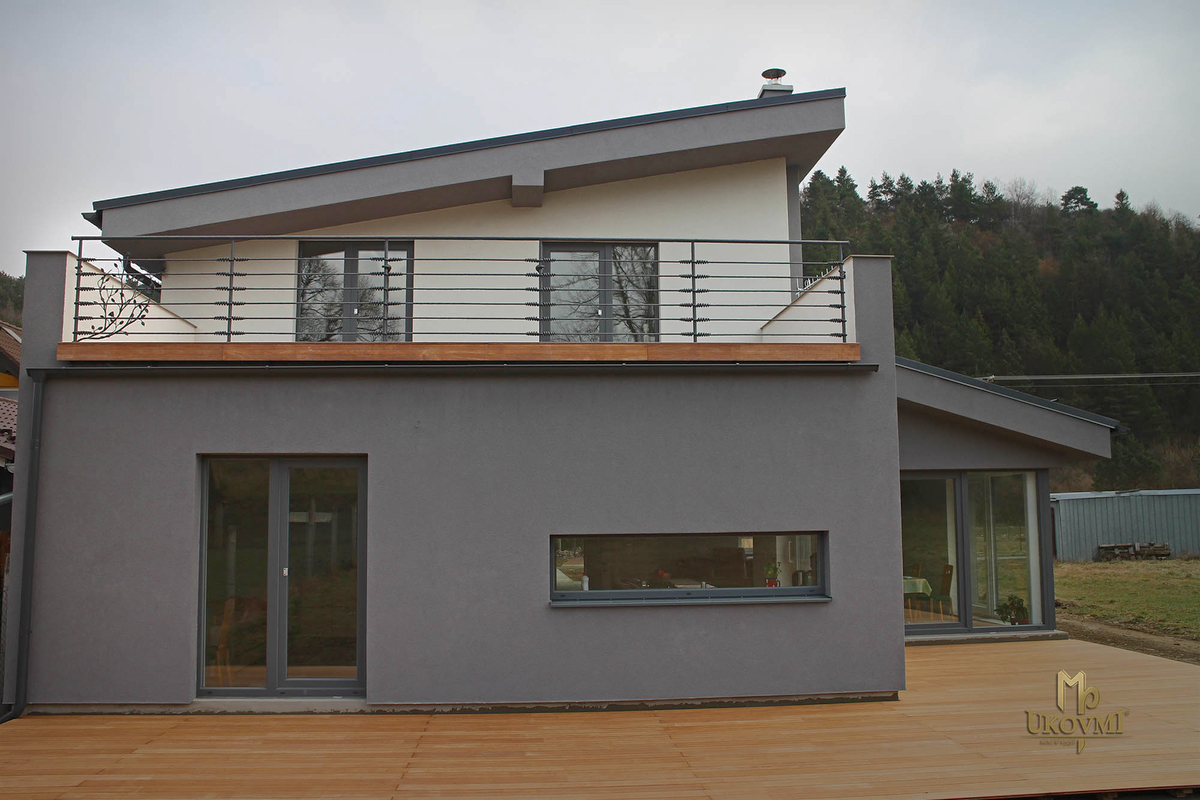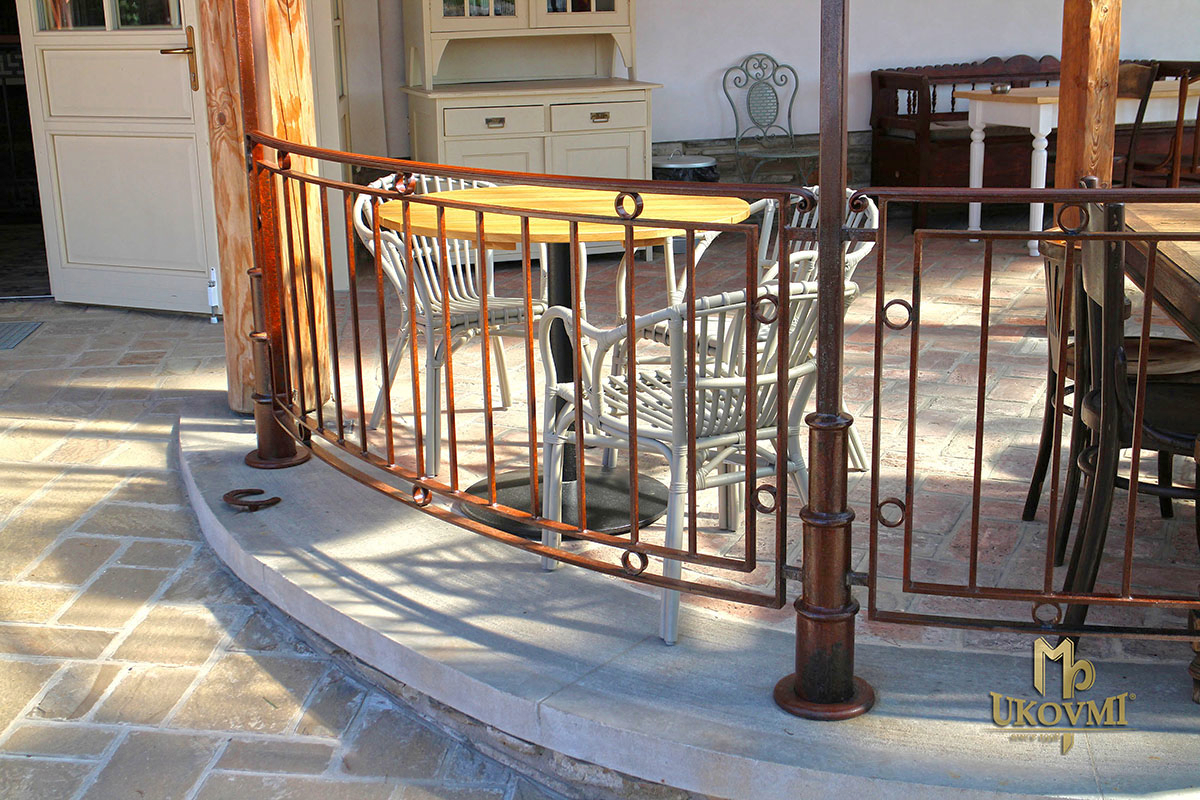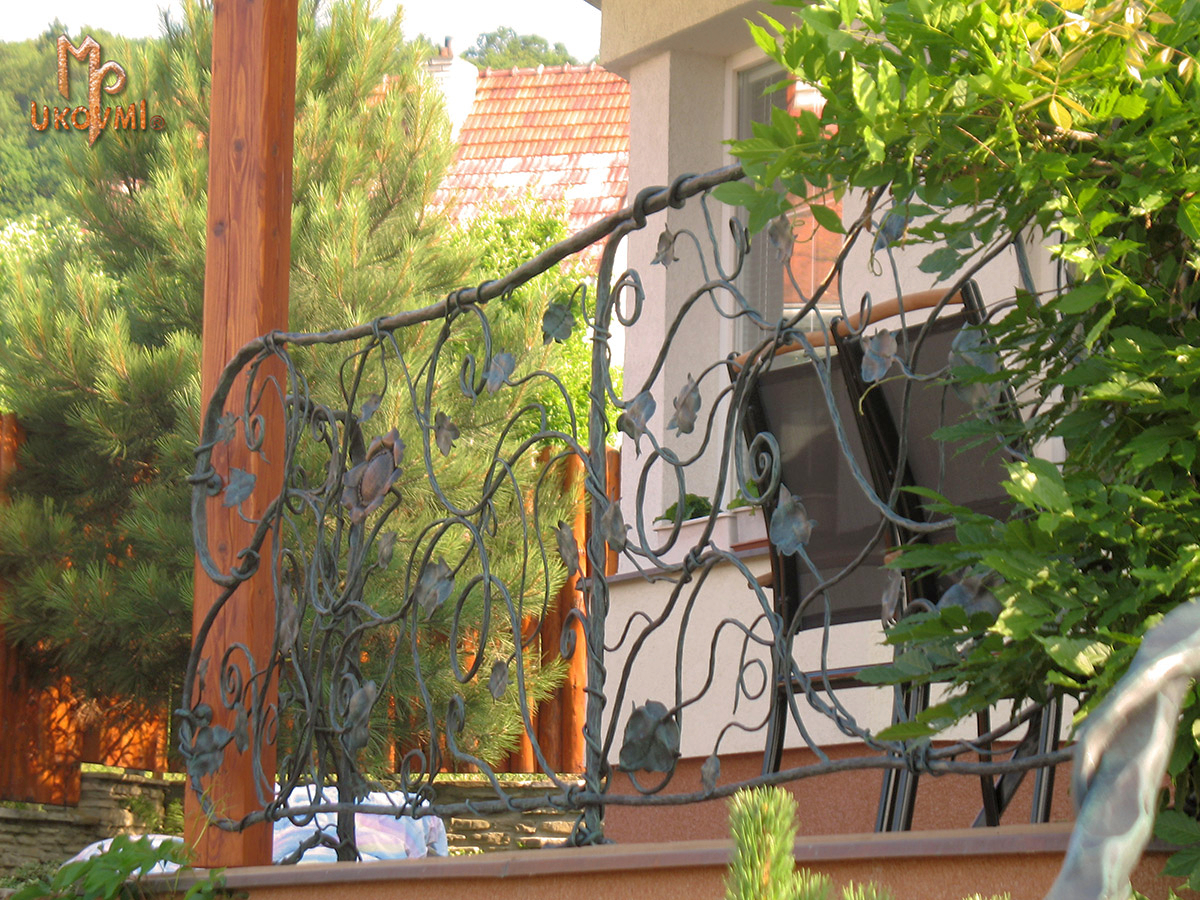 Balustrade artistique fabriquée pour un chalet dans les montagnes de Liptov - balustrade forgée à la main avec le logo UKOVMI