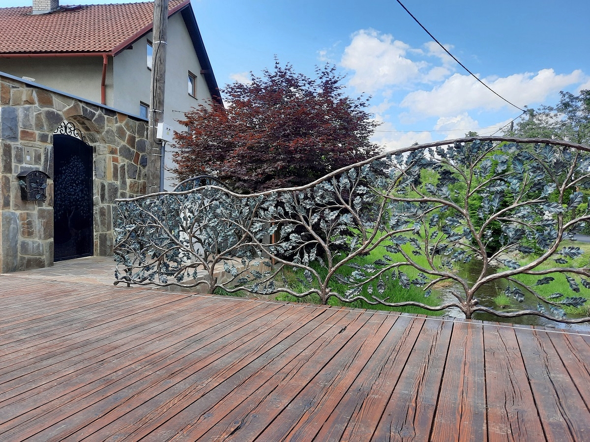 Clôture originale forgée à la main avec garde-corps au design naturel