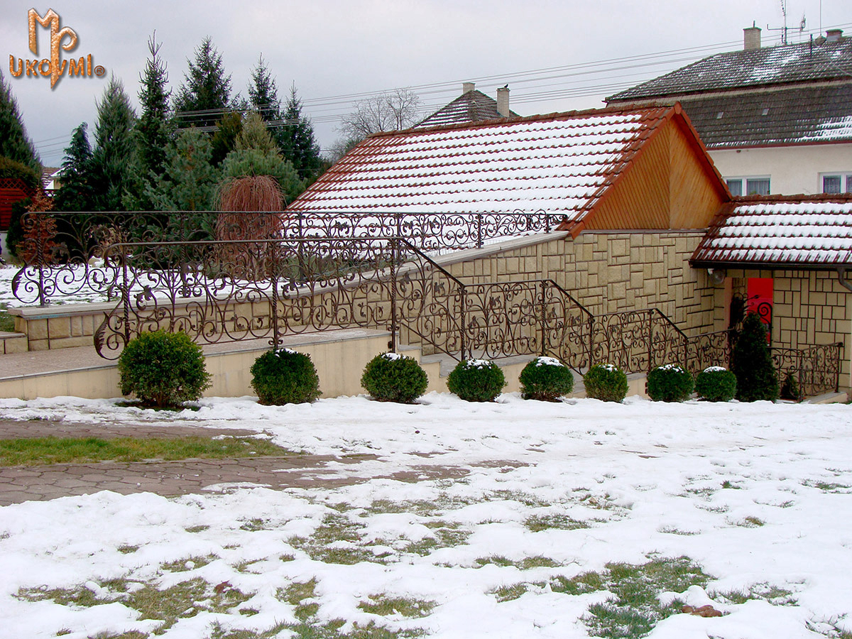 Garde-corps de la terrasse, portail et portillon. Le vue d'ensemble un ouvrage en ferronnerie d'art.
