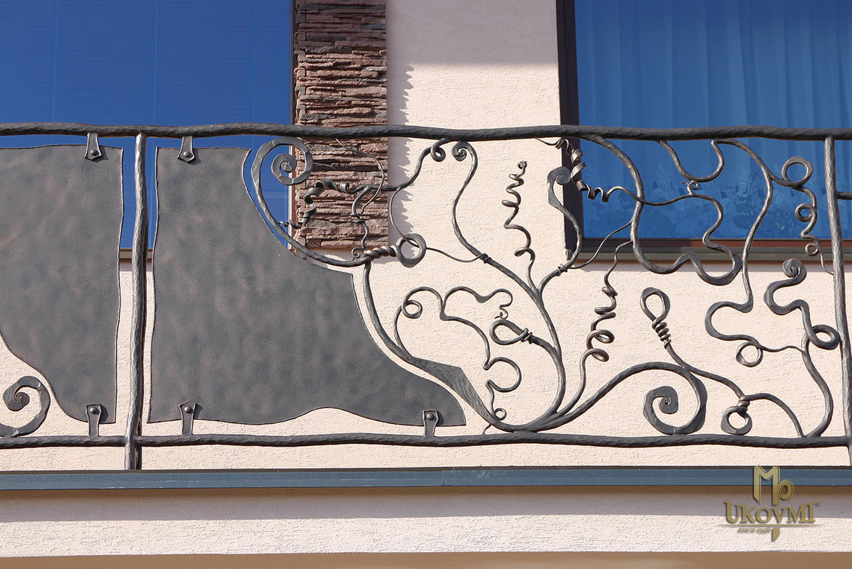 Balustrade sur le balcon d'une maison familiale forgée dans l'artisanat en fer forgé UKOVMI