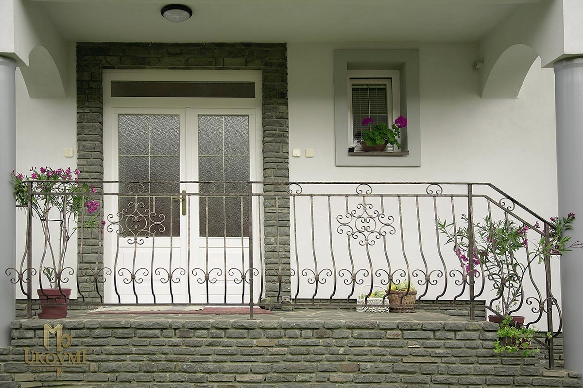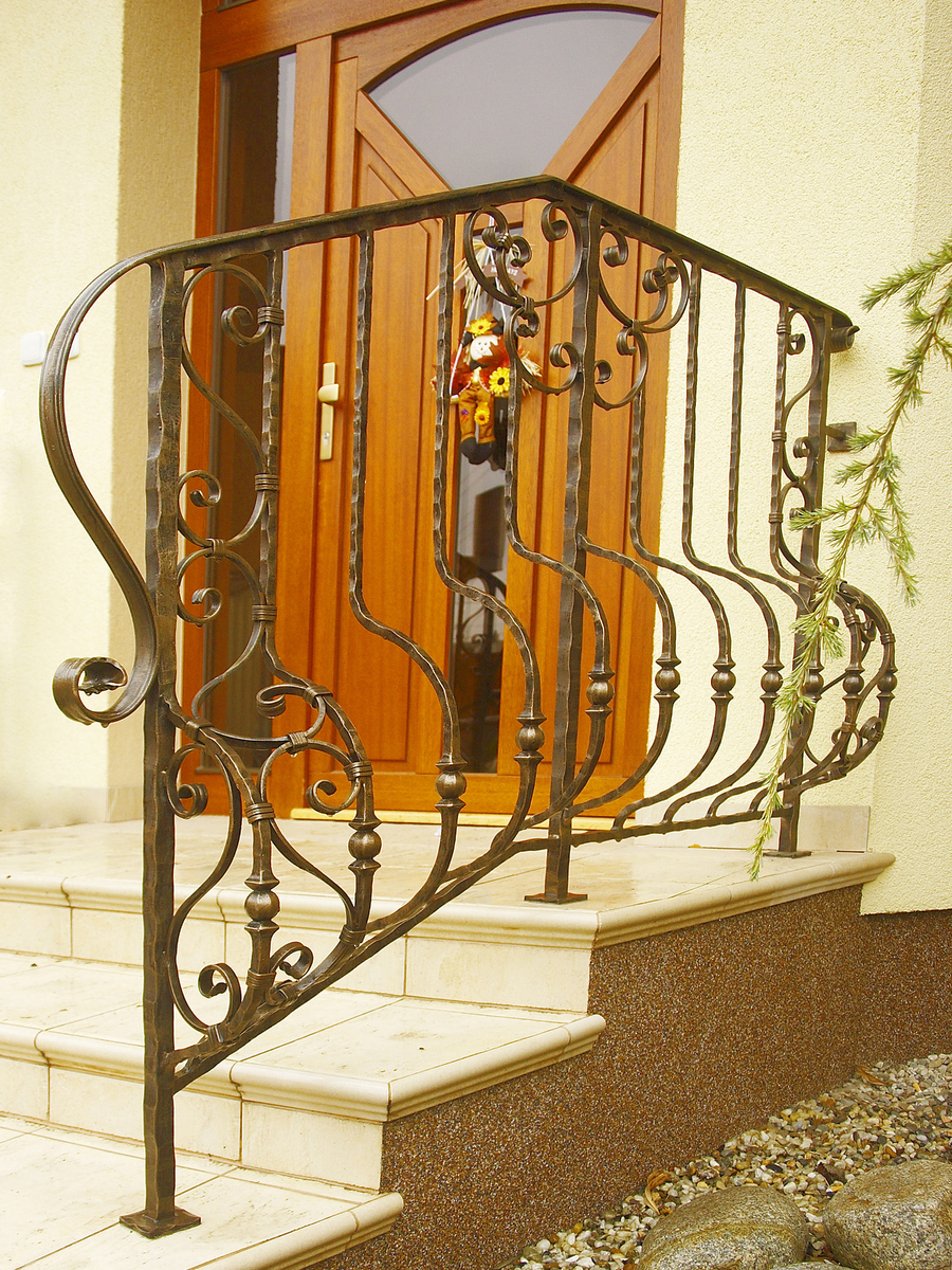 Balustrade extérieure à l'entrée d'une maison familiale - balustrade forgée