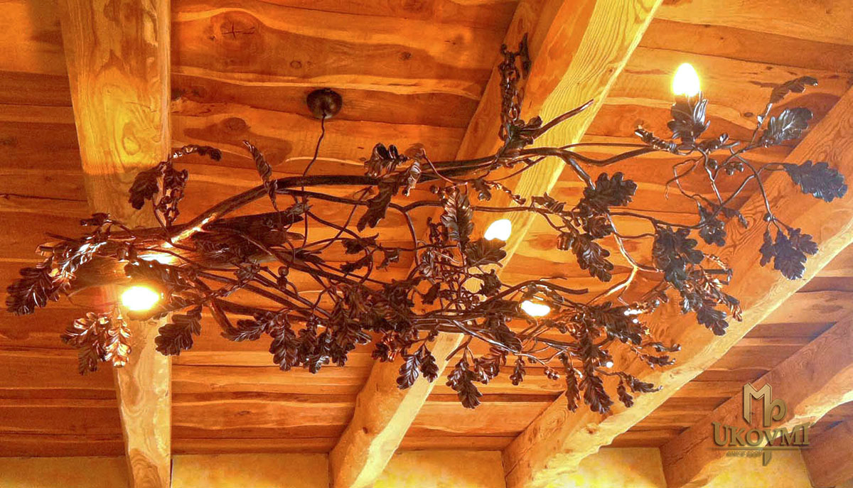 A ceiling light in the shape of an oak - a luxurious hand wrought iron chandelier from UKOVMI