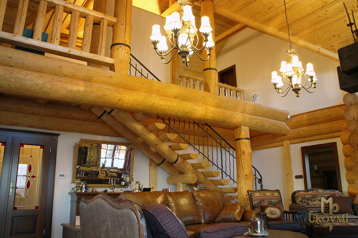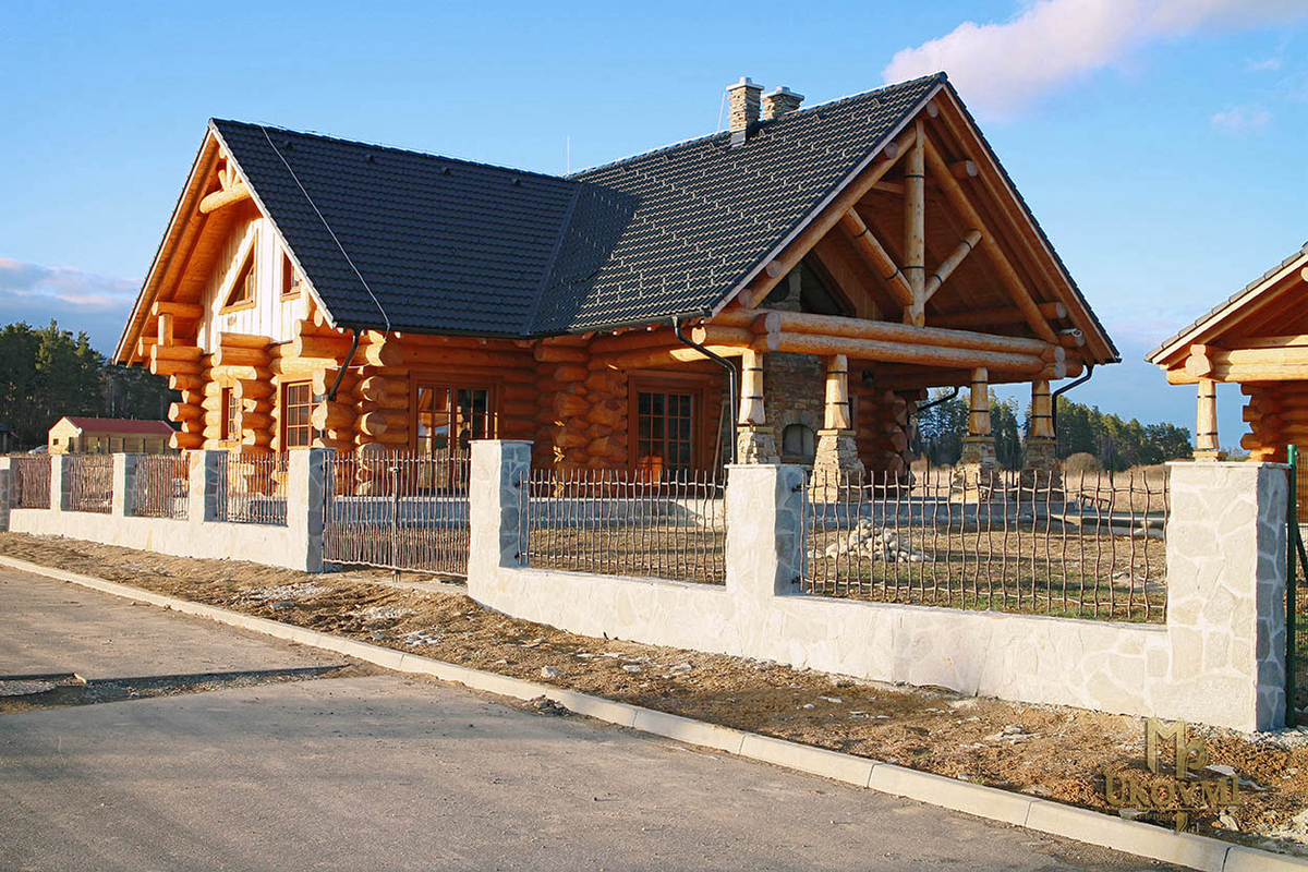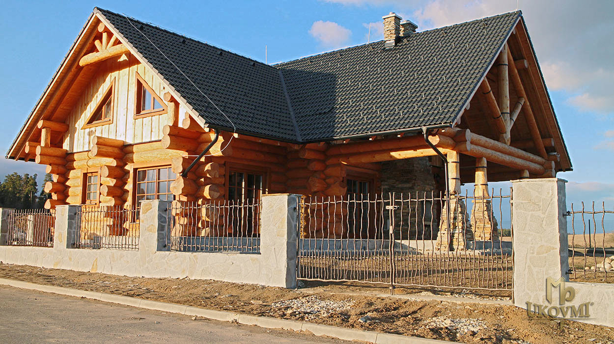 Le chalet en bois, conçu dans un style rustique, où la simplicité se mêle au luxe. La clôture et le garde-corps BABIÈKA ainsi que d'autres accessoires artistiques originaux de UKOVMI vous transportent dans le passé, là où le temps s'est arrêté.