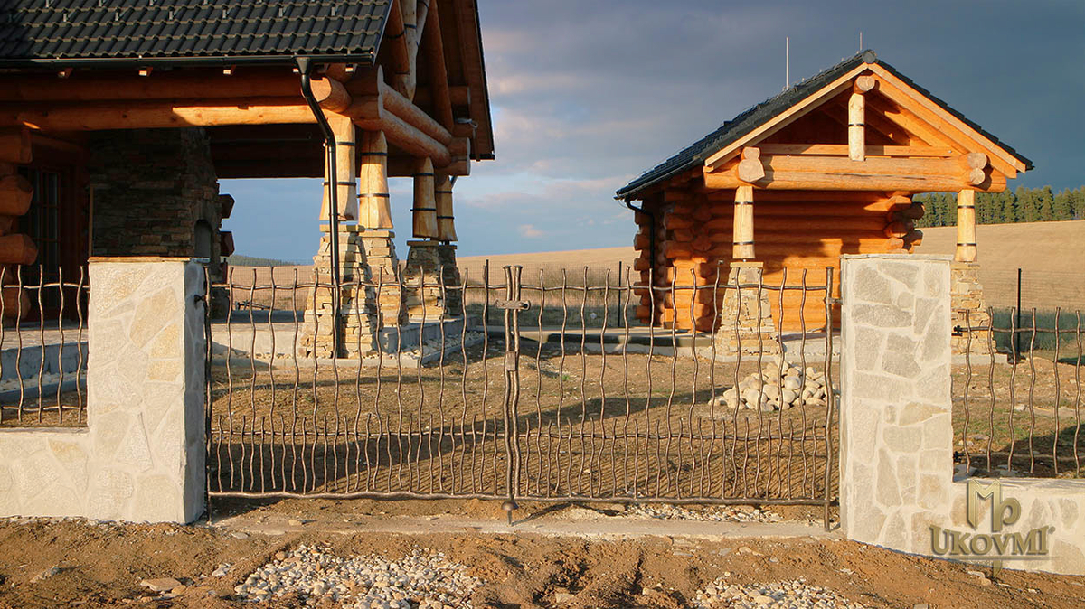 Clôture forgée pour chalet en rondins - Babièka - portail et clôture forgés à la main