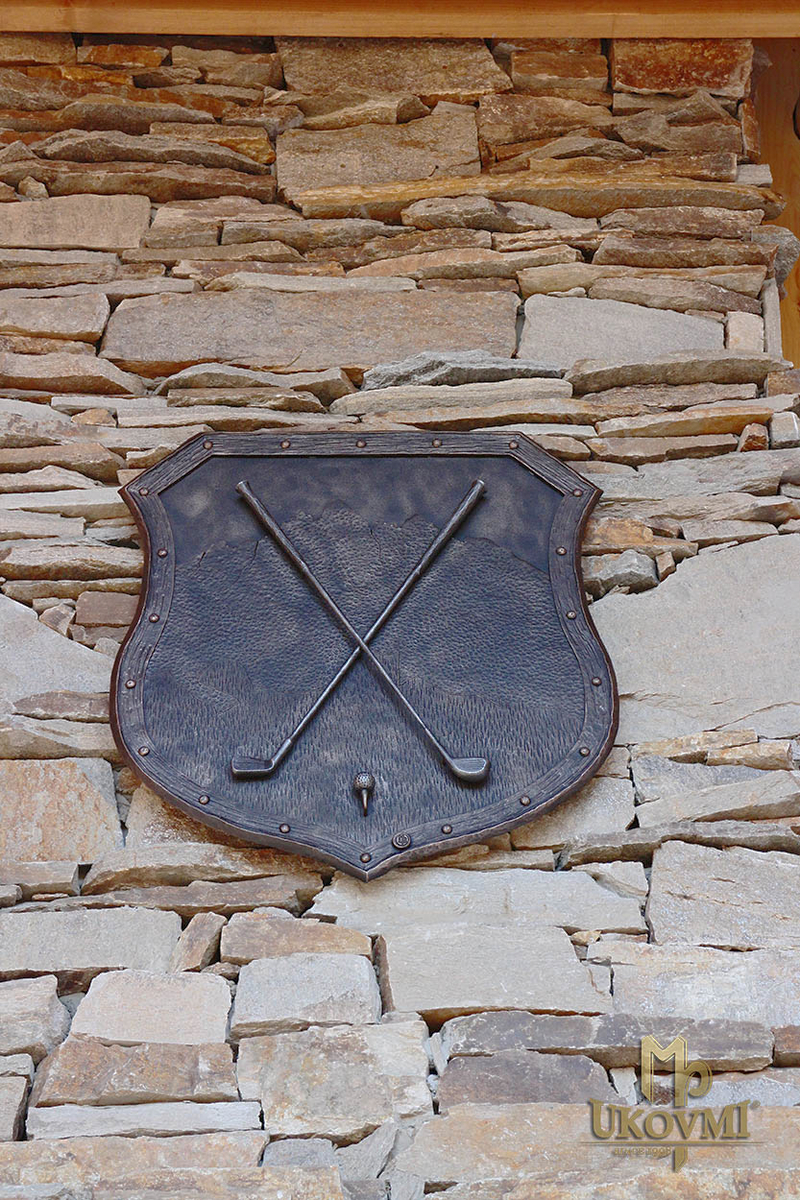 Blason familial forgé avec motif de golf