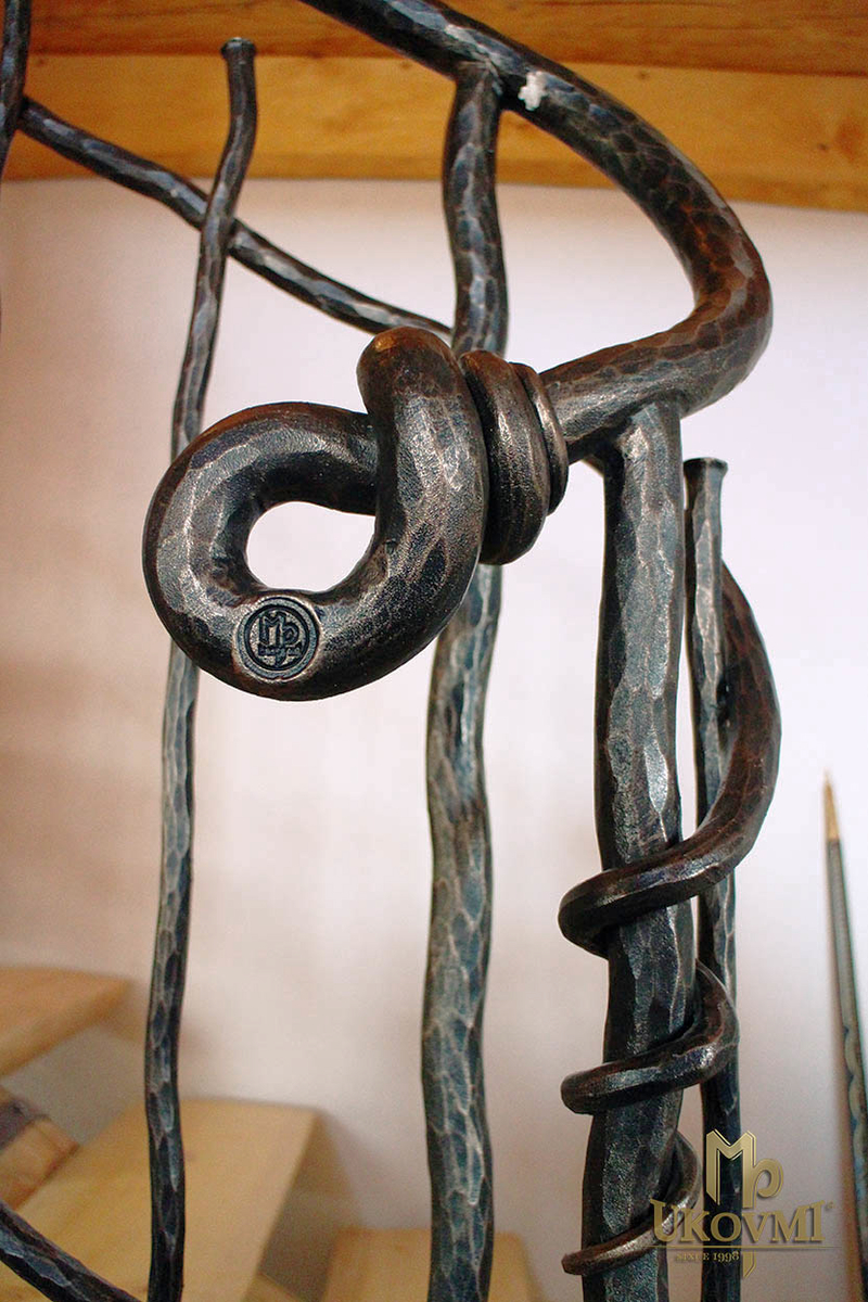 Rampe forgée à la main - détail avec le logo de l'entreprise UKOVMI