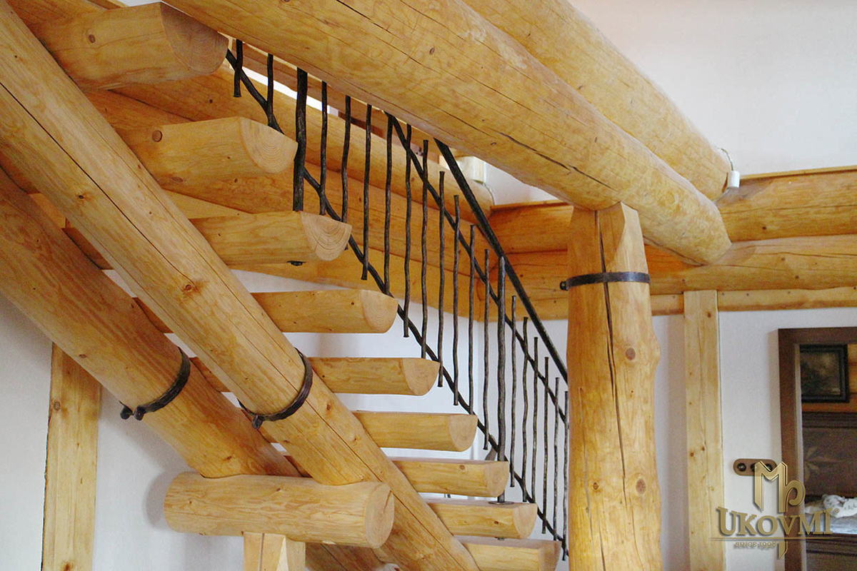 Rampe forgée pour escaliers en rondins dans le style vintage - rampe intérieure