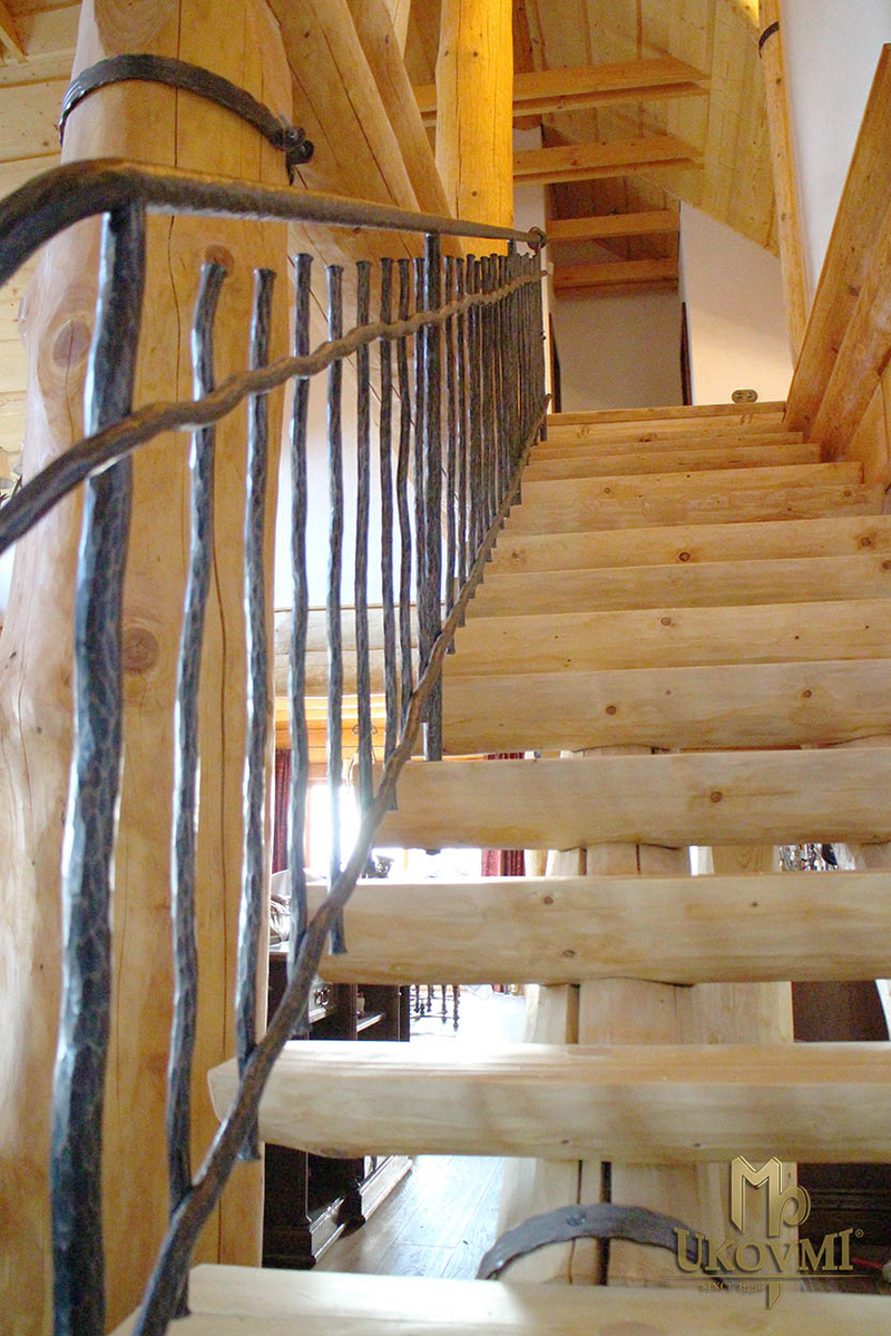 Rampe intérieure dans le style rustique - rampe forgée à la main pour escaliers