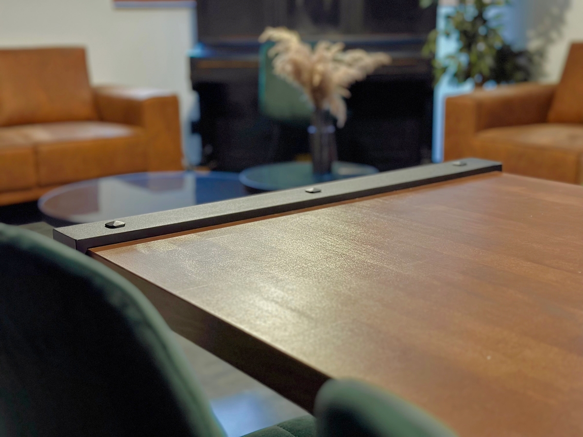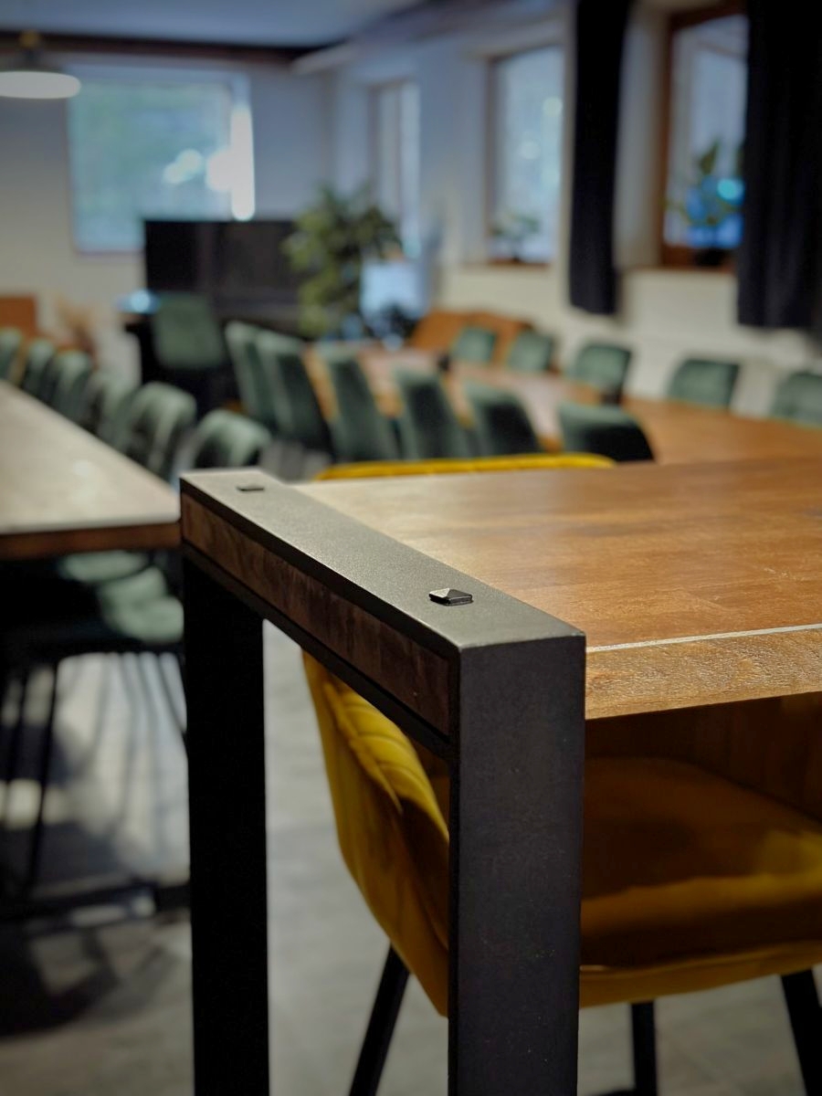 Tables en métal avec du bois dans la salle de conférence