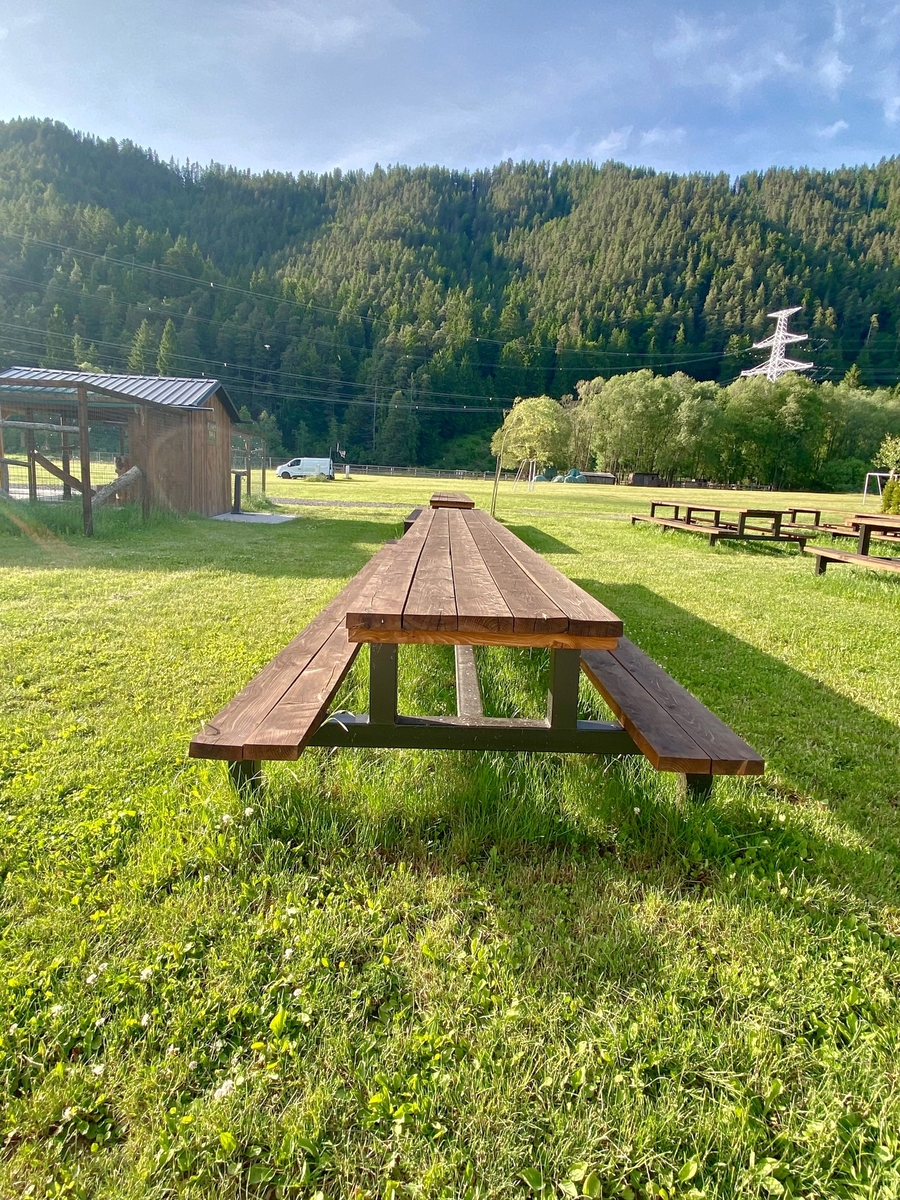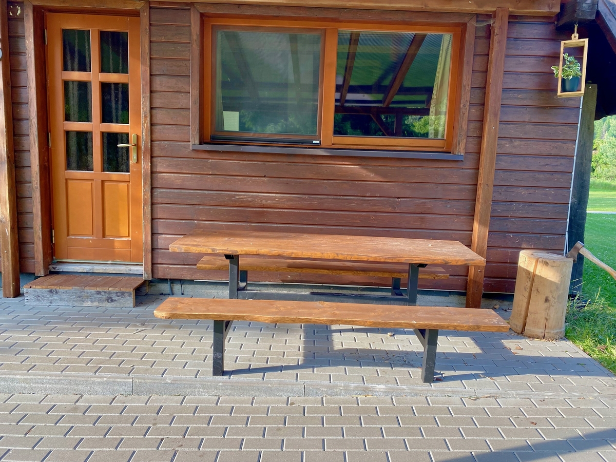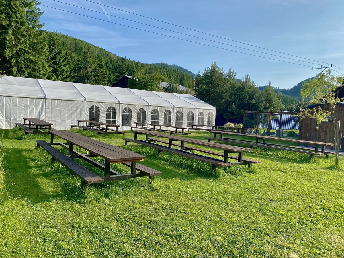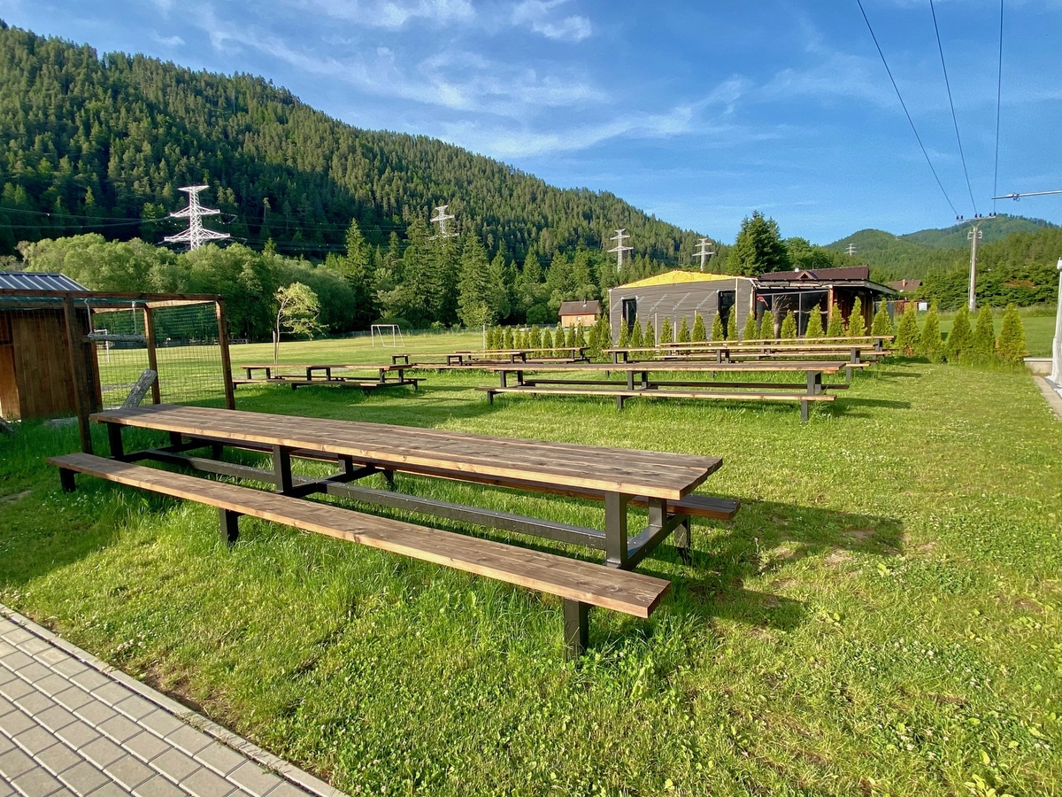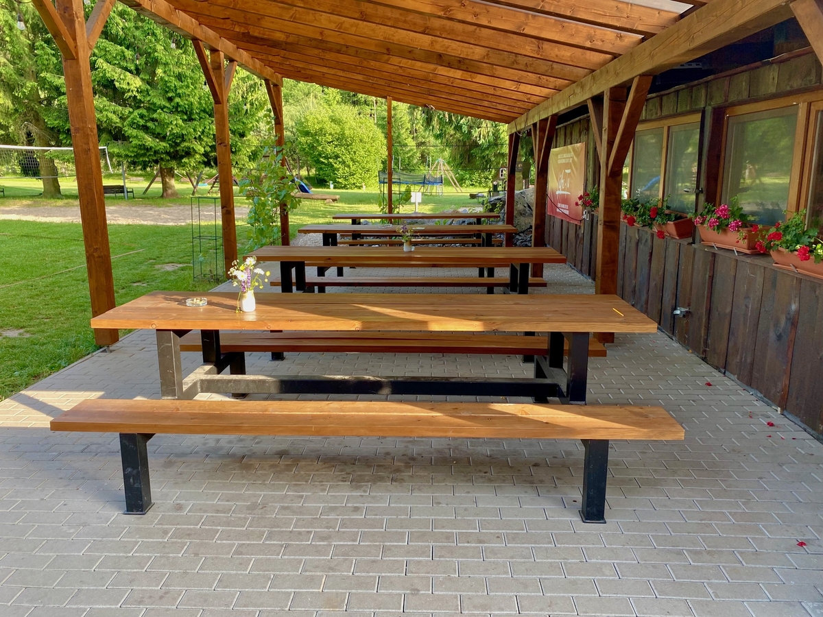 Bancs et tables de jardin pour des événements et des camps au ranch de Kralova Lehota