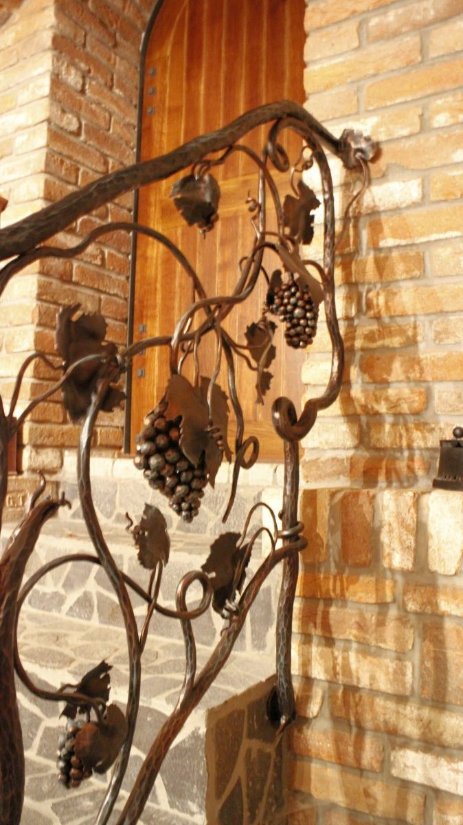 Garde-corps forgé à la main en forme de vigne dans une cave à vin – design artistique