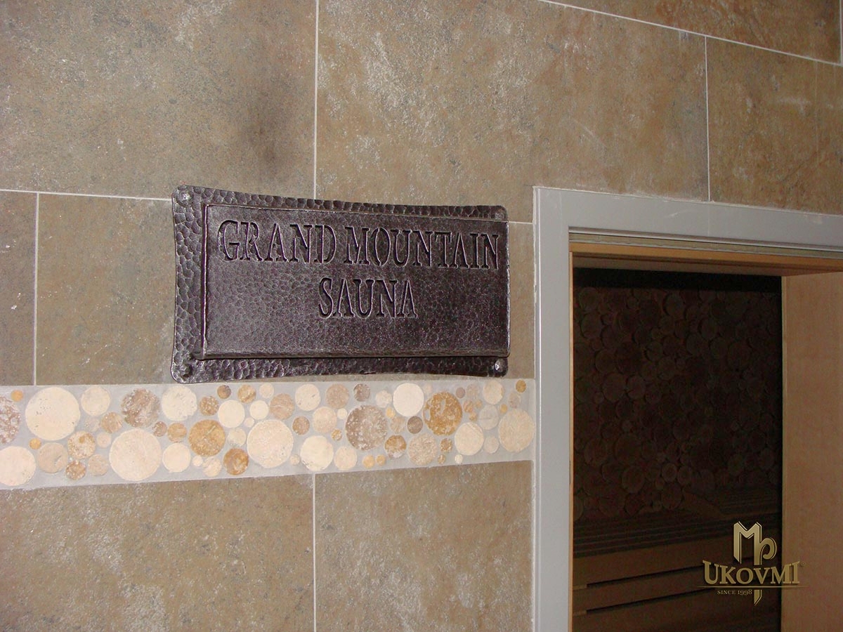 Enseigne d'un sauna en fer forgé