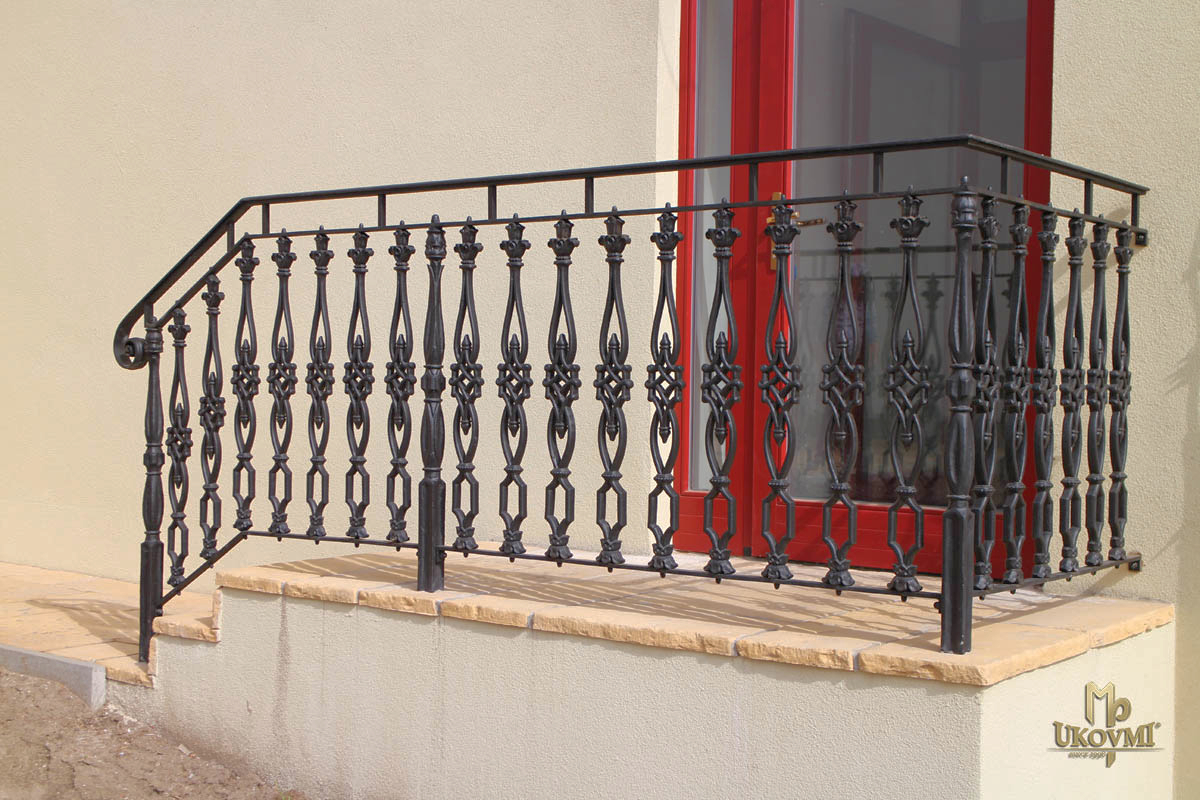 Copie de la balustrade historique sur le balcon d'une maison bourgeoise du XVIe siècle