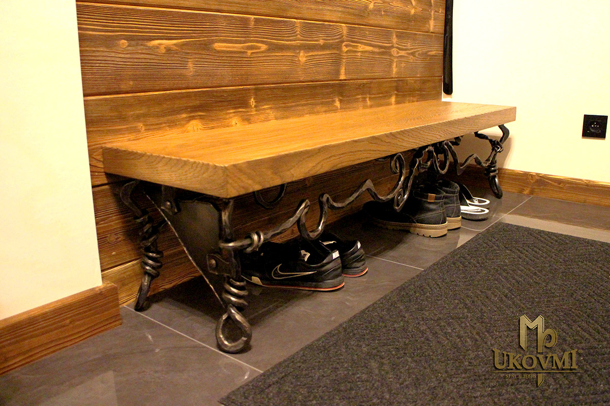 Meuble à chaussures design pour l'entrée - meuble à chaussures forgé à la main combiné avec du bois