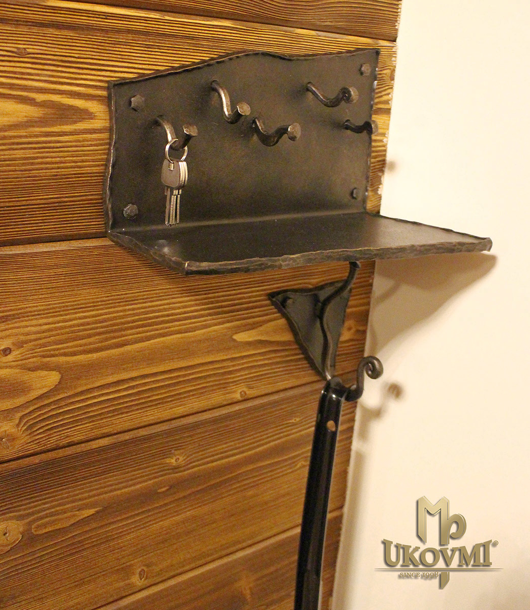 Étagère forgée - porte-clés forgé comme partie du panneau porte-manteaux
