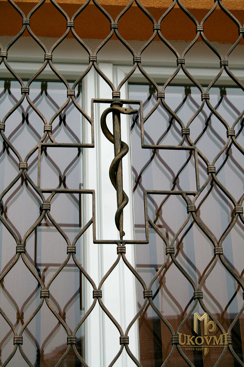Grilles forgées de haute qualité fabriquées par des forgerons d'art pour une pharmacie