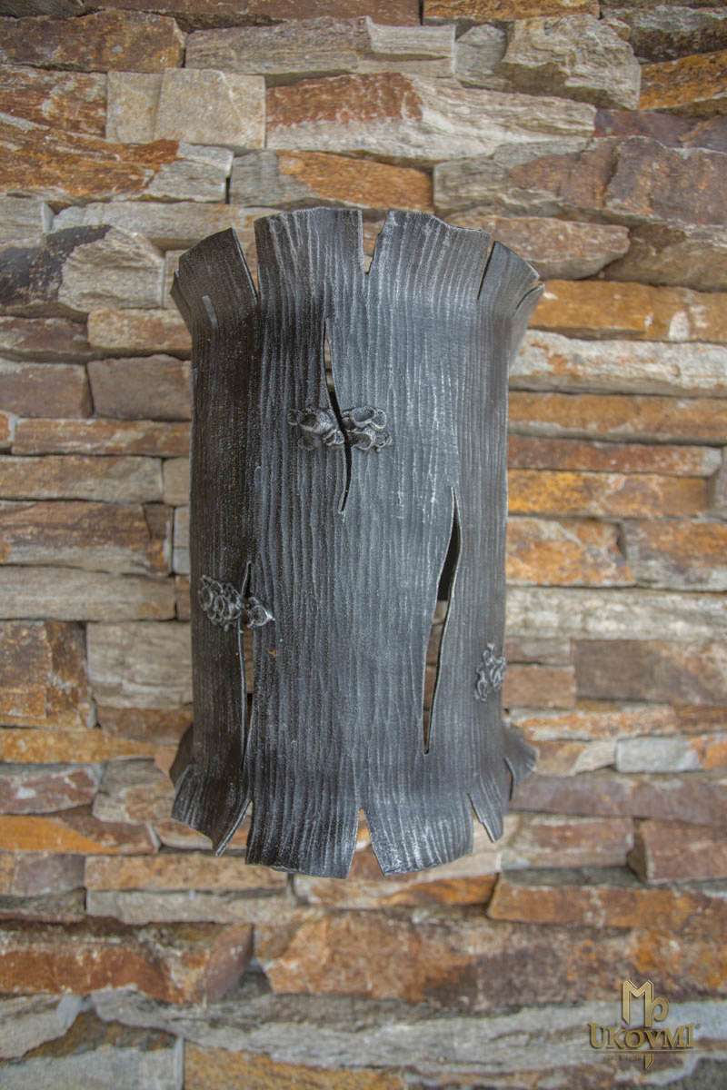 Applique extérieure en fer forgé – luminaire artisanal à la parure de grume, lampe murale inspiré par la nature – éclairage original