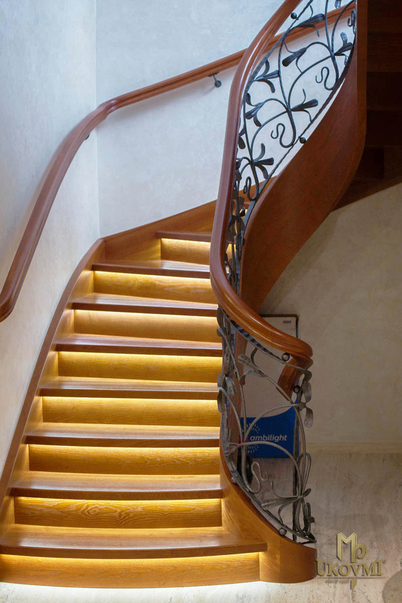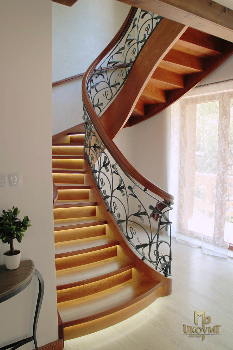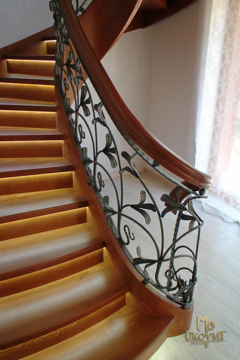 Garde-corps d’escalier en fer forgé et son éclairage - la lampe Klasik incorporé dans le garde-corps – luminaire en fer forgé