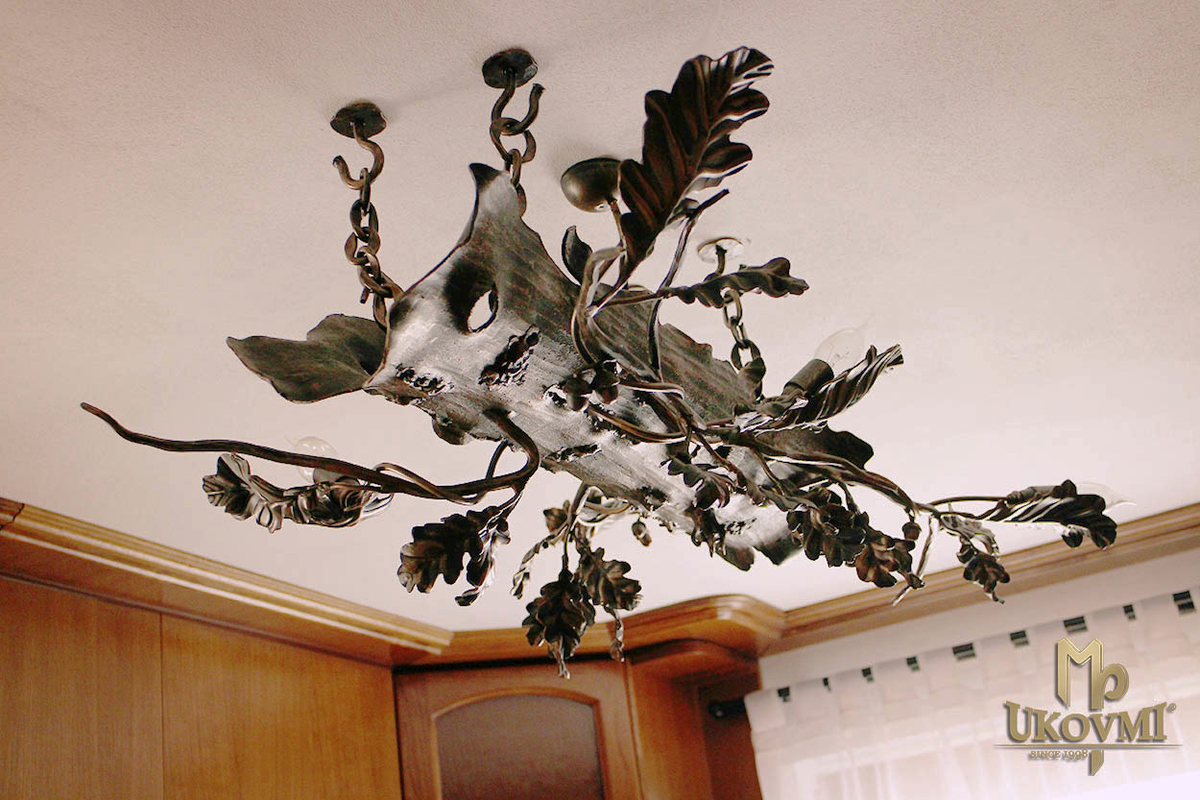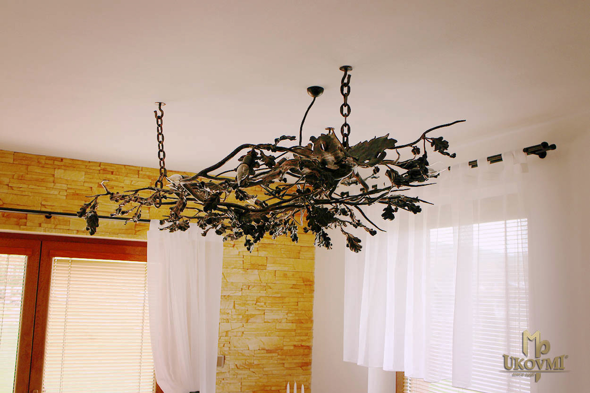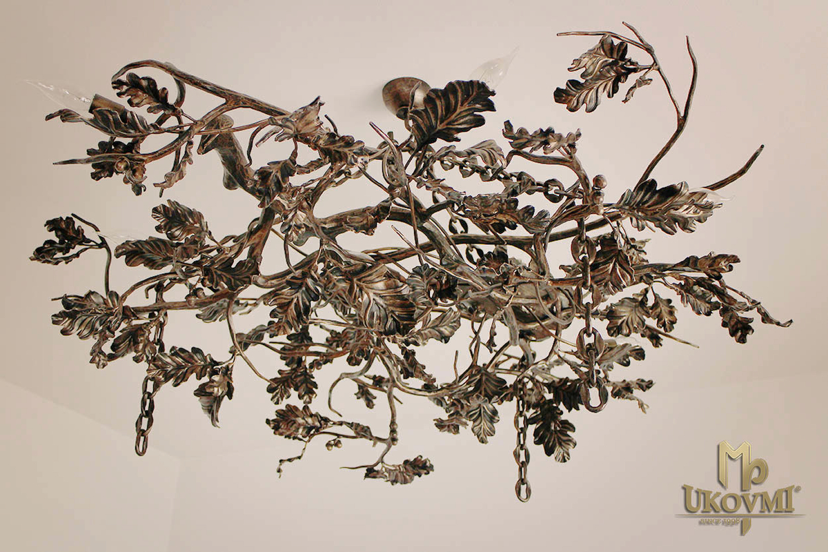 Lustre de luxe intérieur avec motif de chêne - lustre forgé à la main