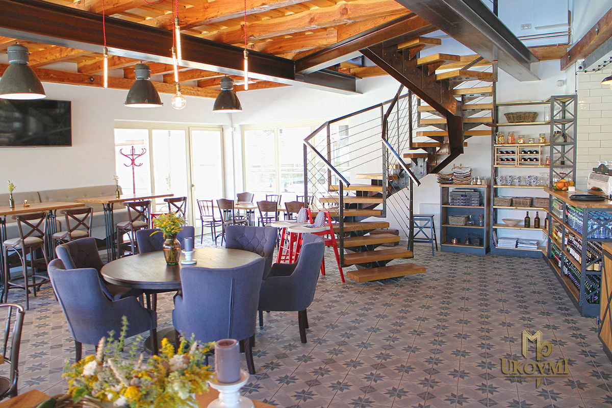 Aménagement stylé du restaurant Zwicker à Prešov – auvent et garde-corps de UKOVMI