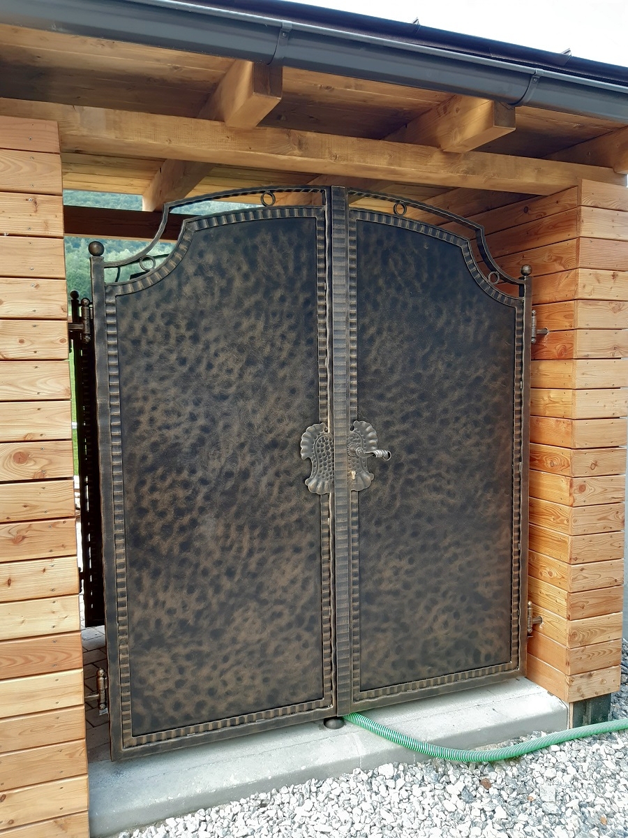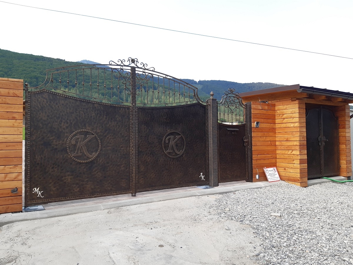 Portail forgé majestueux avec porte piétonne fabriqué pour une maison individuelle en Slovaquie