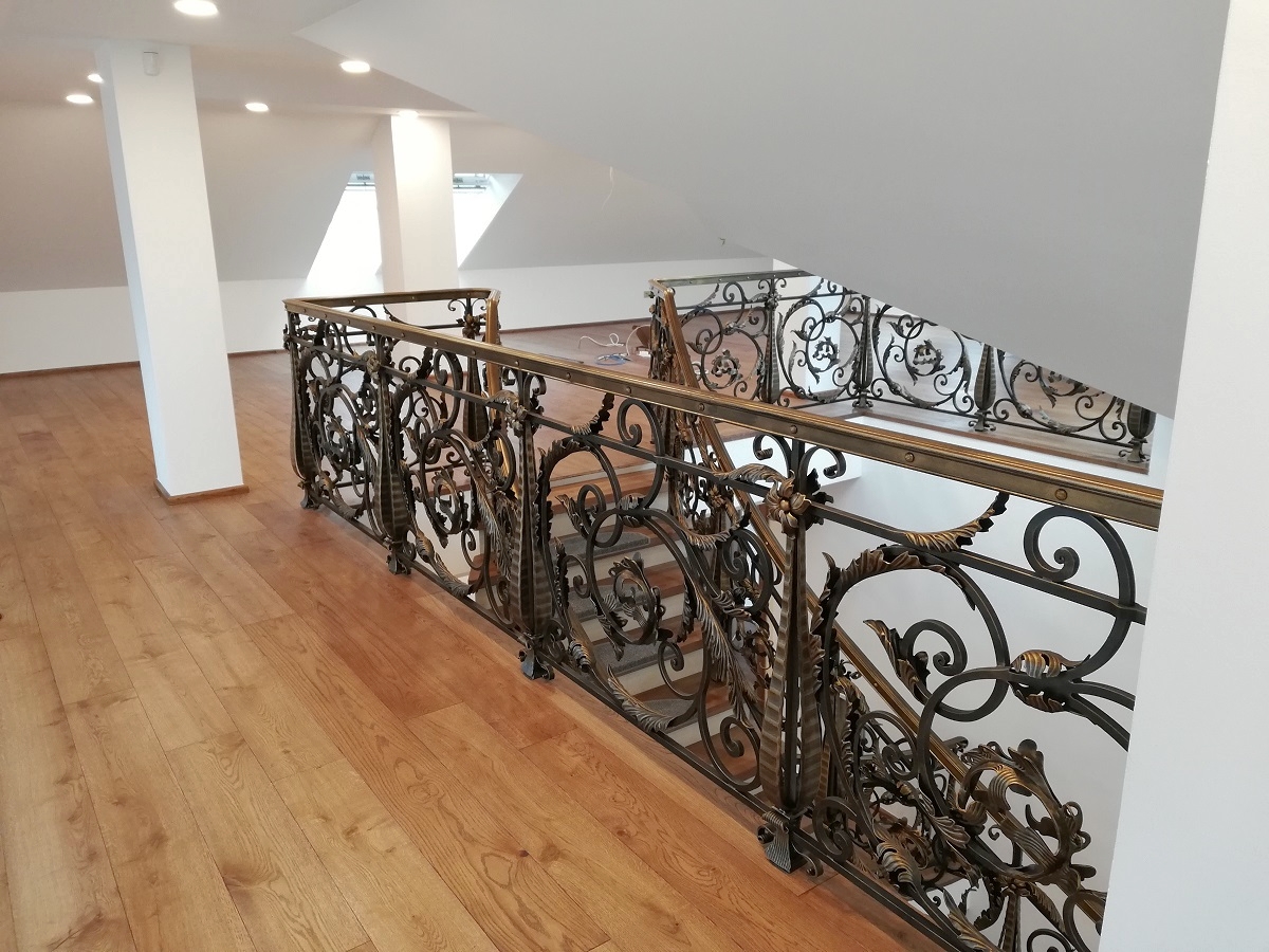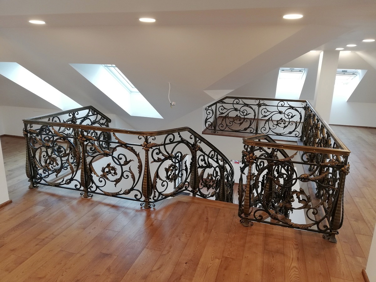Rampes forgées de qualité fabriquées par UKOVMI pour une villa familiale – rampes intérieures pour escaliers et galerie