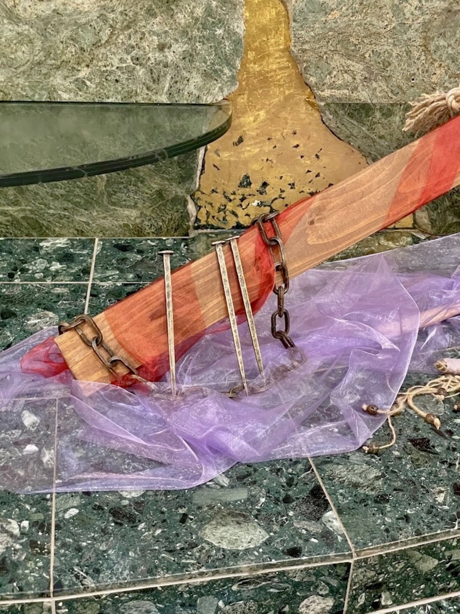 Chaîne et clous en fer forgé symbolisant la crucifixion de Jésus dans l’église de Notre-Dame Reine de la Paix en Slovaquie