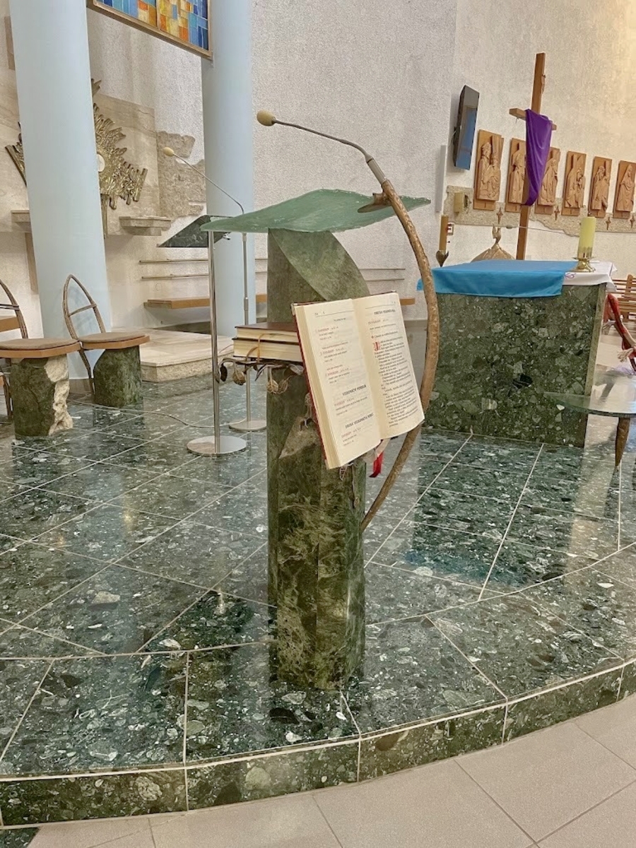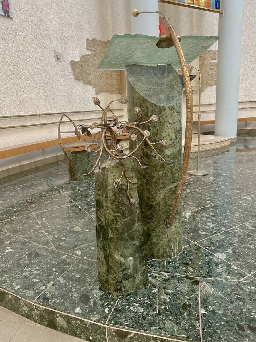 Porte-livres forgé à la main en forme de rose dans l’église de la Reine de la Paix en Slovaquie